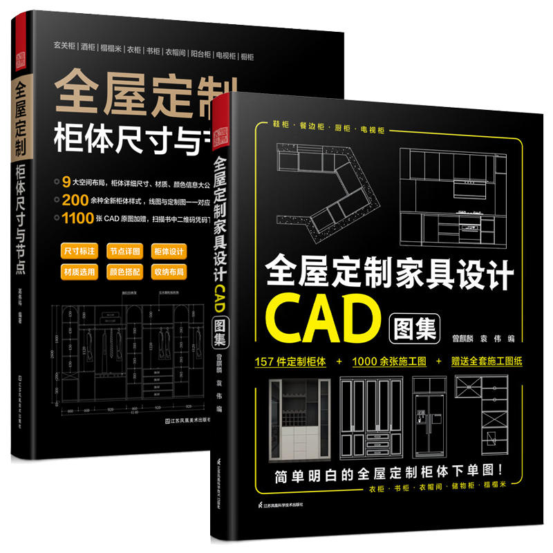 全屋訂製 櫃體尺寸與節點+家具設計CAD圖集(共2冊)