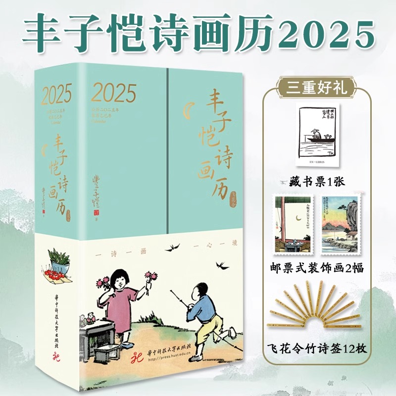 一日一詩一漫畫 豐子愷詩畫歷2025 漫畫古詩日曆【贈藏書票+裝飾畫*2+詩簽12枚】