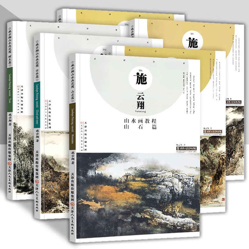 【大8開】施雲翔山水畫教程全6冊 :【雲水+山石+樹木+墨篇+淺絳篇+彩墨篇】