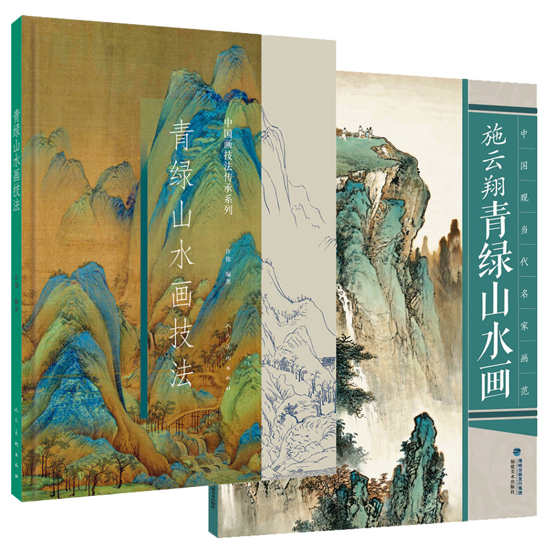 【大開本8開】青綠山水畫技法 +施雲翔青綠山水畫(共2冊) 國畫技法傳承 顏料 工筆 寫意水墨 山水畫法 白描線稿 臨摹千里江山圖解析範例