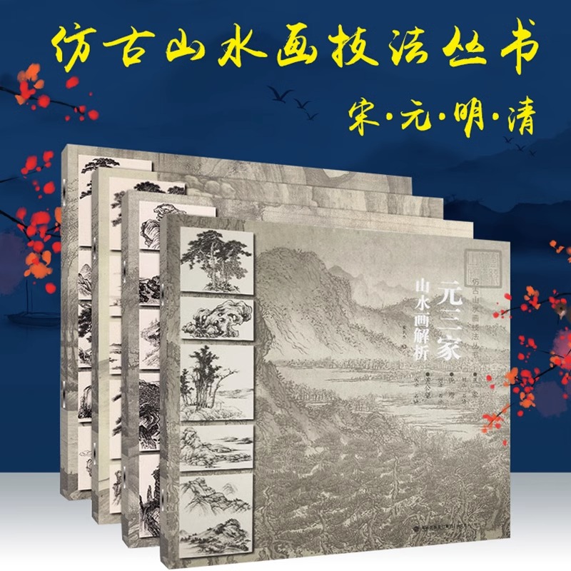 【全四冊】仿古山水畫技法叢書 宋元明清 12開 可平攤 國畫山水畫法教學 新手入門書畫教學書