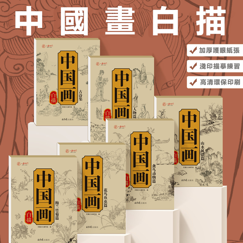 【中國畫白描入門 全套6冊】動物、植物、人物、山水、花鳥、古詩詞,學畫畫的同時,還能成長知識!