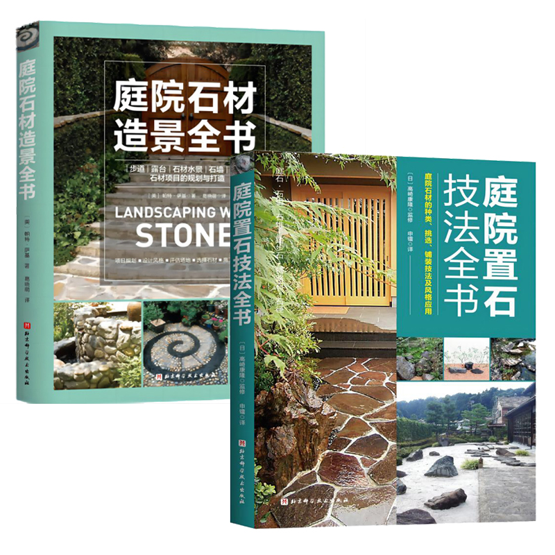 庭院石材造景全書+庭院置石技法全書(共2冊) 庭院鋪裝設計知識和技法的百科全書 景觀庭院設計DIY 專業庭院設計師施工手冊 造園工具書