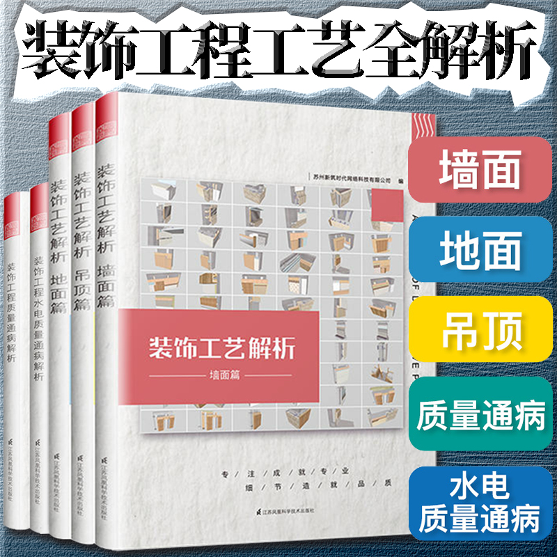 全5冊裝飾工藝解析 吊頂篇 地面篇 牆面篇 裝飾工程質量通病解析 裝飾工程水電質量通病解析 裝飾裝修工法施工室內設計書