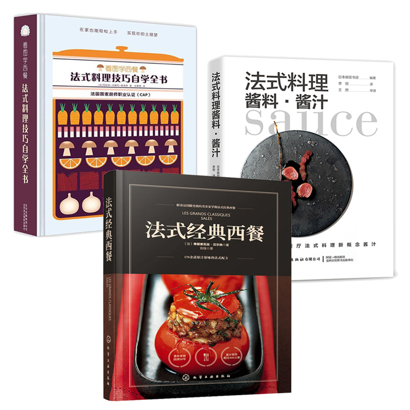 看圖學西餐全3冊:法式料理技巧自學全書+法式經典西餐 +法式料理醬料醬汁 在家學做法式西餐入門教程 法餐製作大全