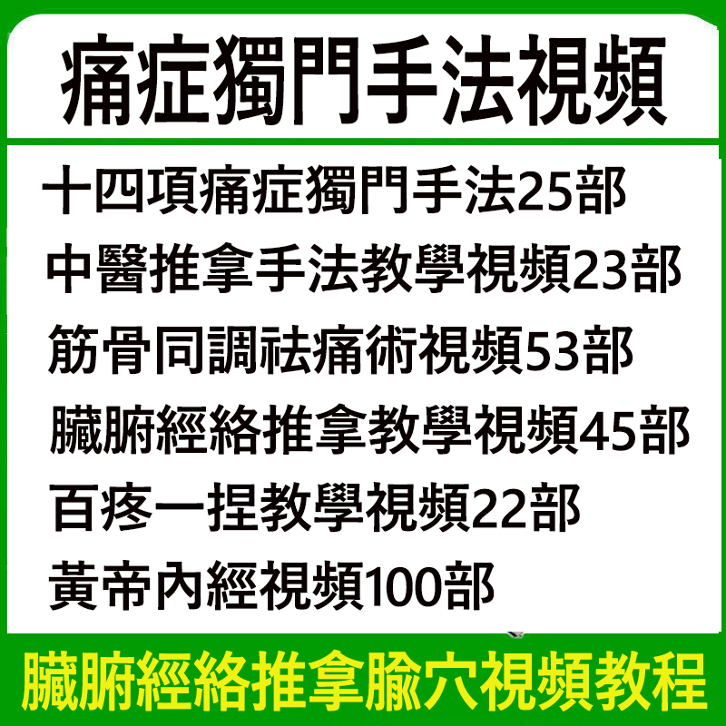 十四項痛症獨門手法視頻 臟腑經絡推拿按摩腧穴揉腹按法疼痛視頻教程隨身碟32G