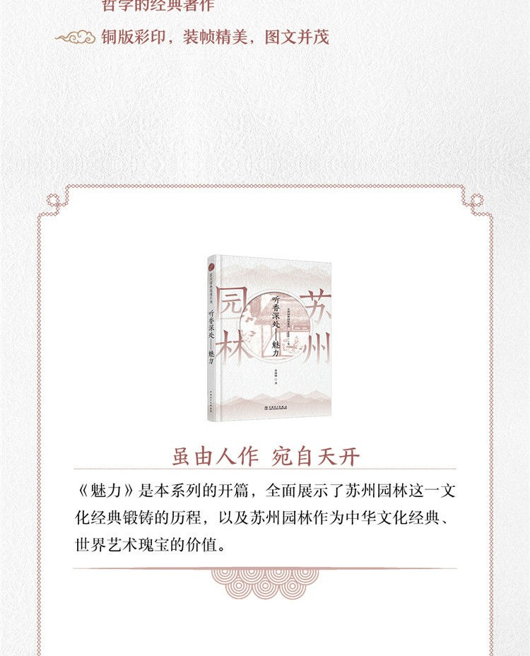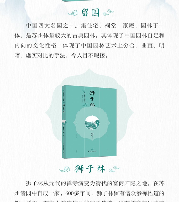 "中國古典園林是承載中華文化的靚麗名片,具有無可取代的歷史文化價值。蘇州園林更是古典園林的精華,中華文化經典,世界文化瑰寶。獅子林從元代的禪寺演變為20 世紀 20 年代的富商歸隱之地,在蘇州諸園中自成一家。600 多年間,獅子林留有僧眾參禪悟道的假山群峰、有文人賦詩作畫的紀勝詩碑,也有儒商燕居睦族 的舊院。林林總總的歷史印痕,使其獨具魅力。