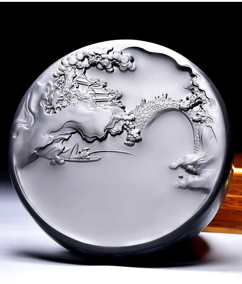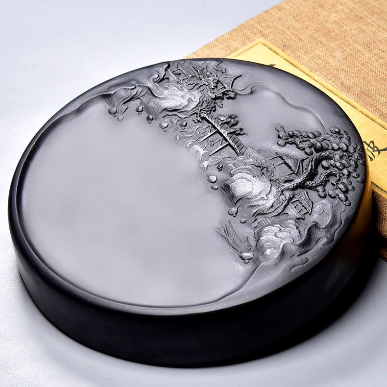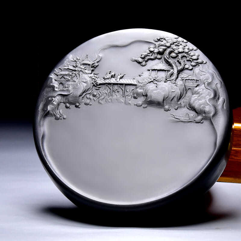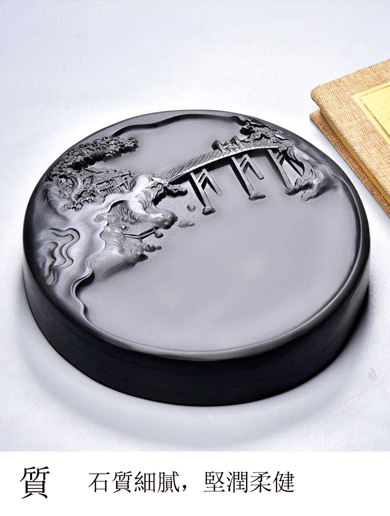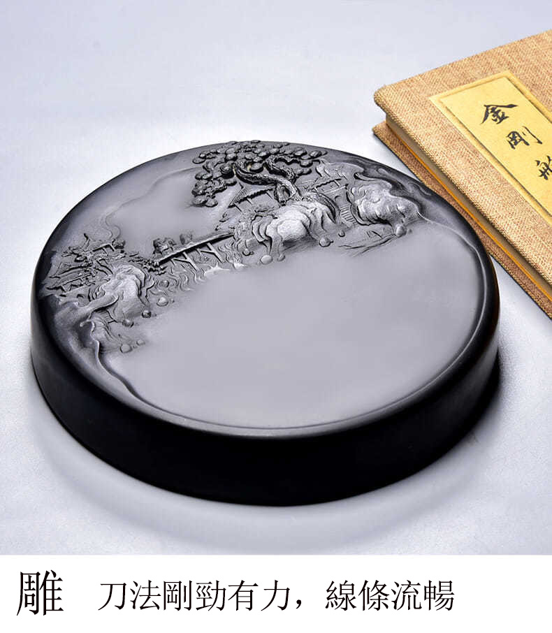 天然整塊烏金石茶盤 國風山水畫 清明上河圖 石茶盤 影雕工藝