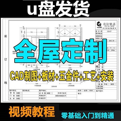 3400套家裝衣櫃/酒櫥櫃子/榻榻米/書櫃/鞋櫃/家具CAD圖庫 平立面設計施工圖 U盤64G(U盤發貨 無需下載 即插即看)