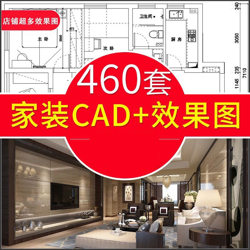 CAD平面佈局模組合集500套 客廳 臥室 廚房 衛生間 cad圖庫+2024室內CAD施工圖模板 +彩色施工圖製圖模板(64G U盤發貨,無需下載,即插即用)