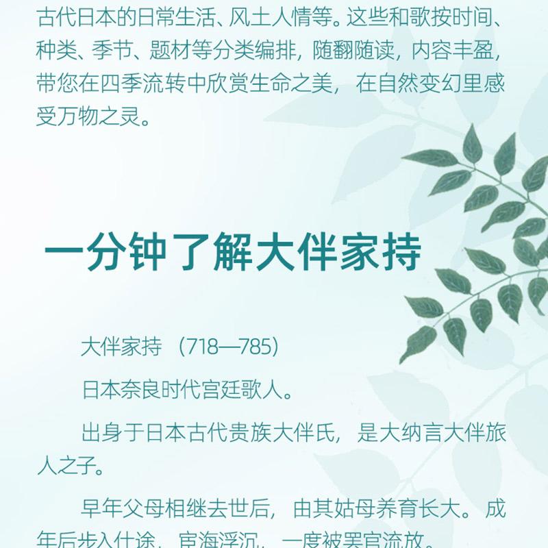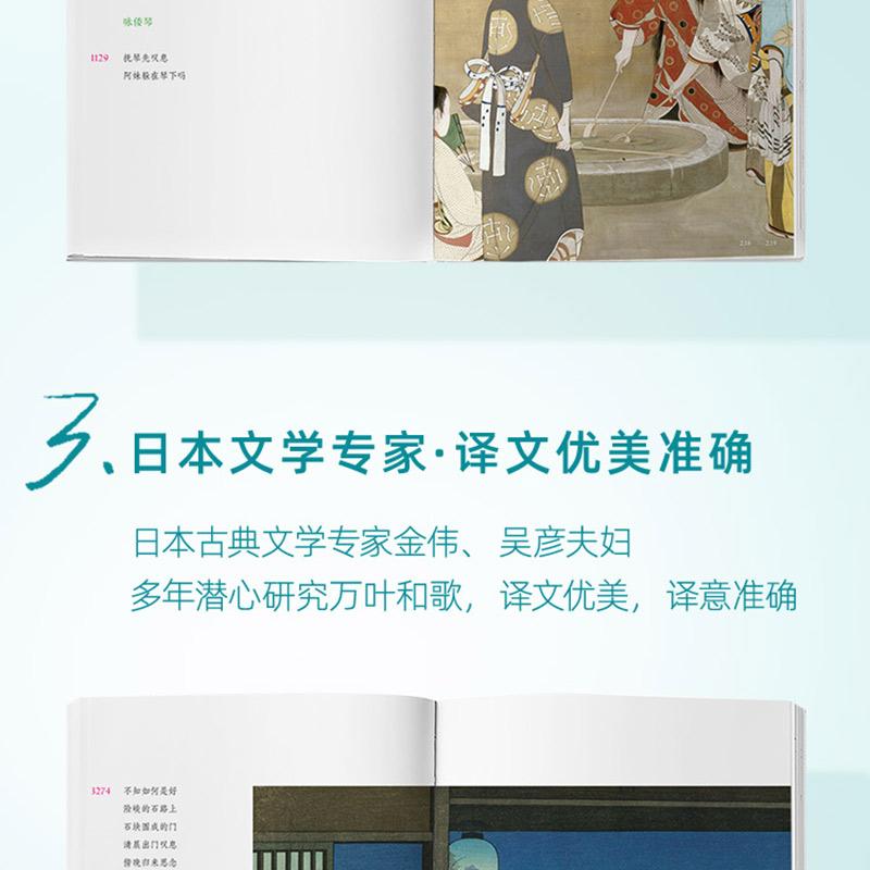 ◆ 日本文學專家,譯本優美:日本古典文學研究者、知名翻譯家金偉、吳彥夫婦,在日本留學多年,深入考察萬葉遺跡,潛心研究萬葉和歌,譯文優美,譯意準確。