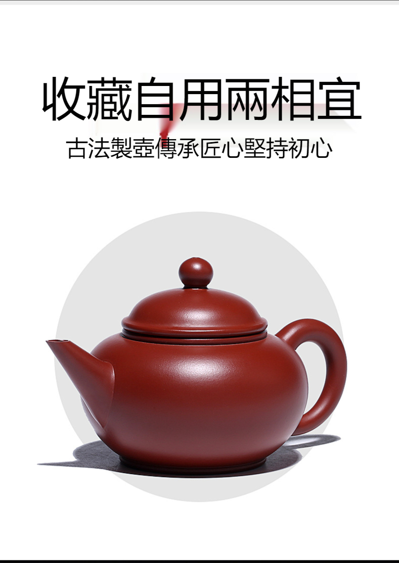 【簡介】水平壺是隨伴著華南一帶飲工夫茶而來的,而紫砂藝術是一種高雅的文化,紫砂藝人們將自己的思想和意境表達於紫砂壺之上,更將中國傳統文化知識世襲傳承,此款原礦紫泥全手工製作而成的水平壺更多了份沉穩與優雅味道,值得品味!