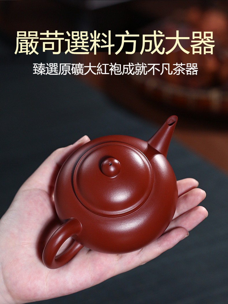 宜興純手工大口大紅袍 小容量紫砂茶壺(80cc)(禮盒包裝,附壺繩,收藏證書)