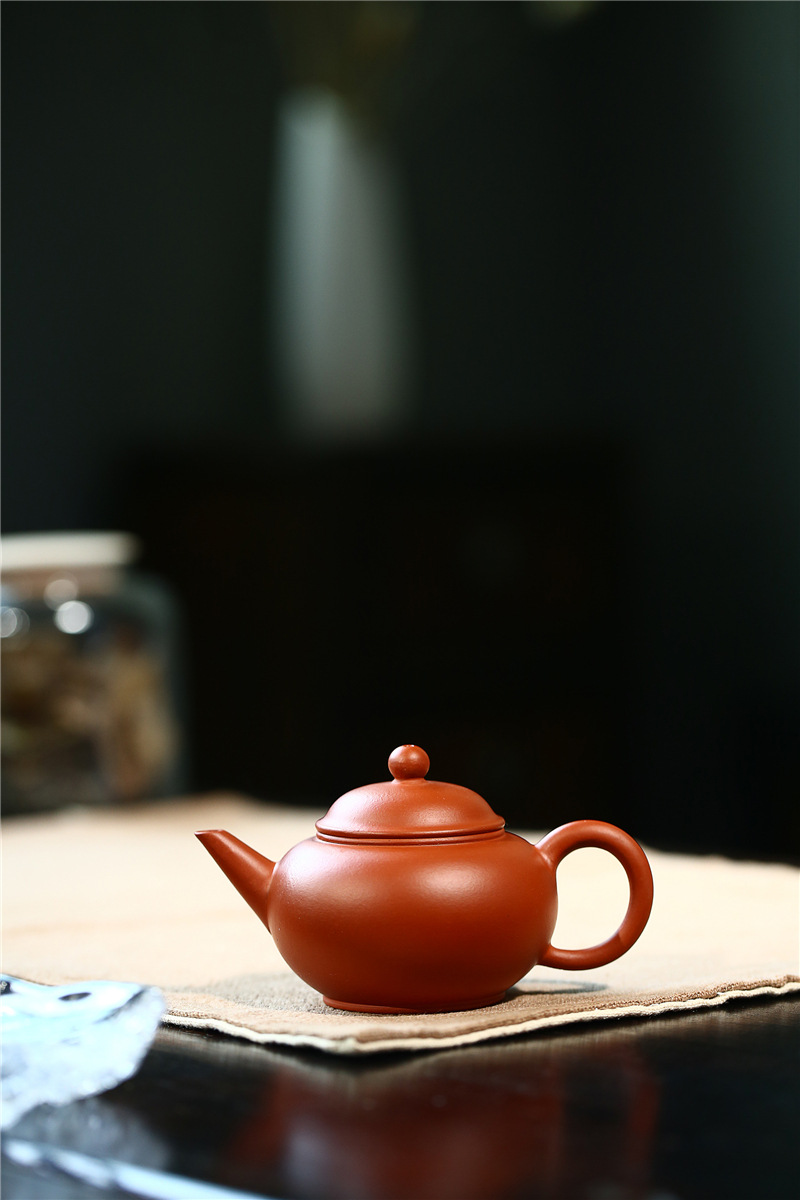 原礦朱泥全手工大紅袍小容量子怡石瓢紫砂壺100cc