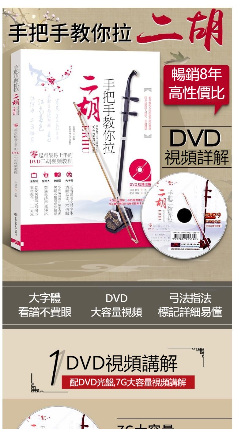 【附贈光盤DVD全套教程+掃碼看視頻】二胡演奏167首經典流行歌曲彙編——書中詳細標有指法,弓法,內外弦等 大字體,專為中老年人設計 高清視頻示範,一學就會!全台免運,貨到付款!