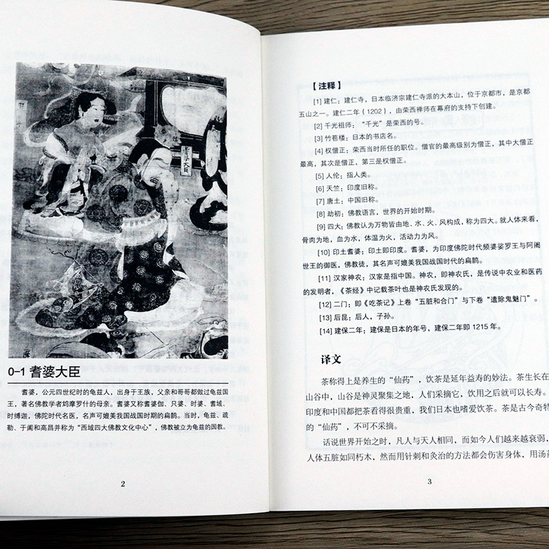 同時,《喫茶記》(《喫茶養生記》)中配有近百幅與茶相關的插圖,讀者在閱讀的同時還可欣賞古時畫家的精湛畫作,勞逸結合,能夠激發讀者的閱讀興趣。在圖說部分,我們又對插圖中的人物或故事進行了解說,增加了圖書的知識點,豐富了圖書的內容。