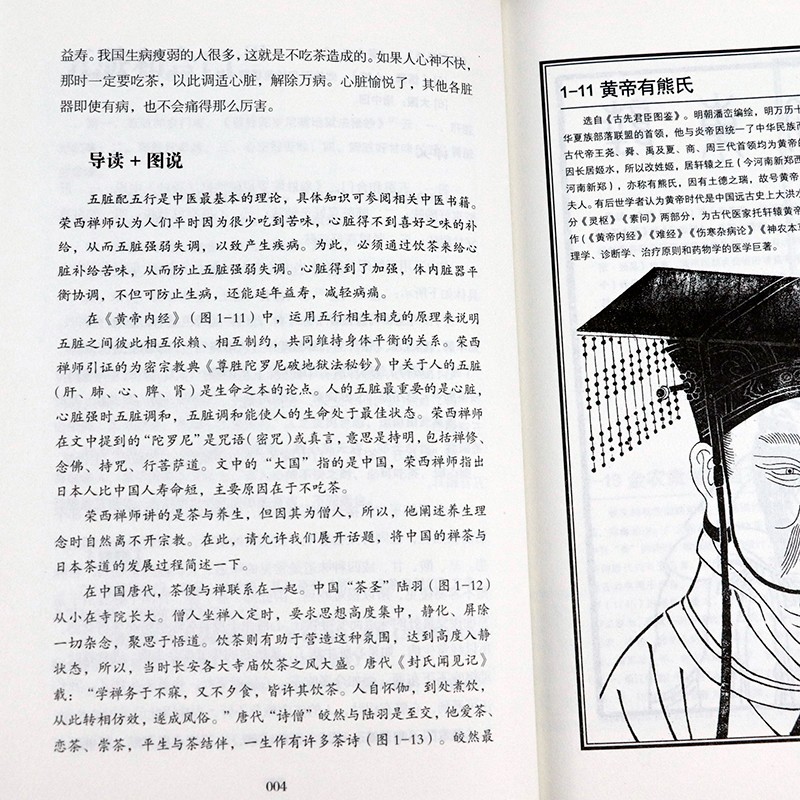 《喫茶記》(《喫茶養生記》)主要論述茶的藥物性能,全書由兩部分構成:上卷《五臟和合門》和下卷《譴除鬼魅門》。本書重點講的不是禪茶,也不是茶道,這是一本關於健康的書。編者通過註釋、譯文、導讀+圖說對《喫茶記》(《喫茶養生記》)做了全面的、詳細的解讀。註釋部分,是譯者對書中生澀的詞語的解說,包括一些佛教用語、特定稱呼、生澀詞語等。在導讀+圖說部分,譯者講述了中源遠流長的茶文化、日本茶文化、榮西禪師的經歷、書中相關人物及故事、成書時的人文習俗等,有很多生動有趣的“茶故事”,讀者看後自會會心一笑。