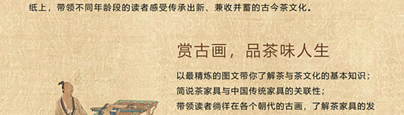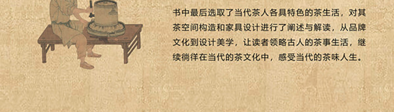 本書以古畫為媒,以茶事活動為眼,以茶文化演變為軸,以茶生活與茶家具為落腳點,讓歷代茶畫中古人的生活躍然紙上,帶領不同年齡段的讀者感受傳出新、兼收並蓄的古今茶文化。本書共有四個部分:第一部分著重茶與茶文化的簡單概述,以最精煉的語言和圖形歸納的方式展現;第二部分是對茶家具與中國傳統家具關聯性的簡說;第三部分是本書的重點,穿越古畫時空,欣賞中國古代茶事與茶家具的魅力,了解茶家具的發展演變和不同時期的茶生活;第四部分透過幾位有緣的設計師、茶人的作品,能夠看到現代許多的設計和茶事活動,其中依然帶著古畫中的影子,這種影響是經典的延續,傳統文化的延續,也是文化自信的彰顯。