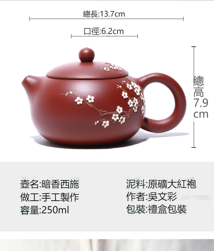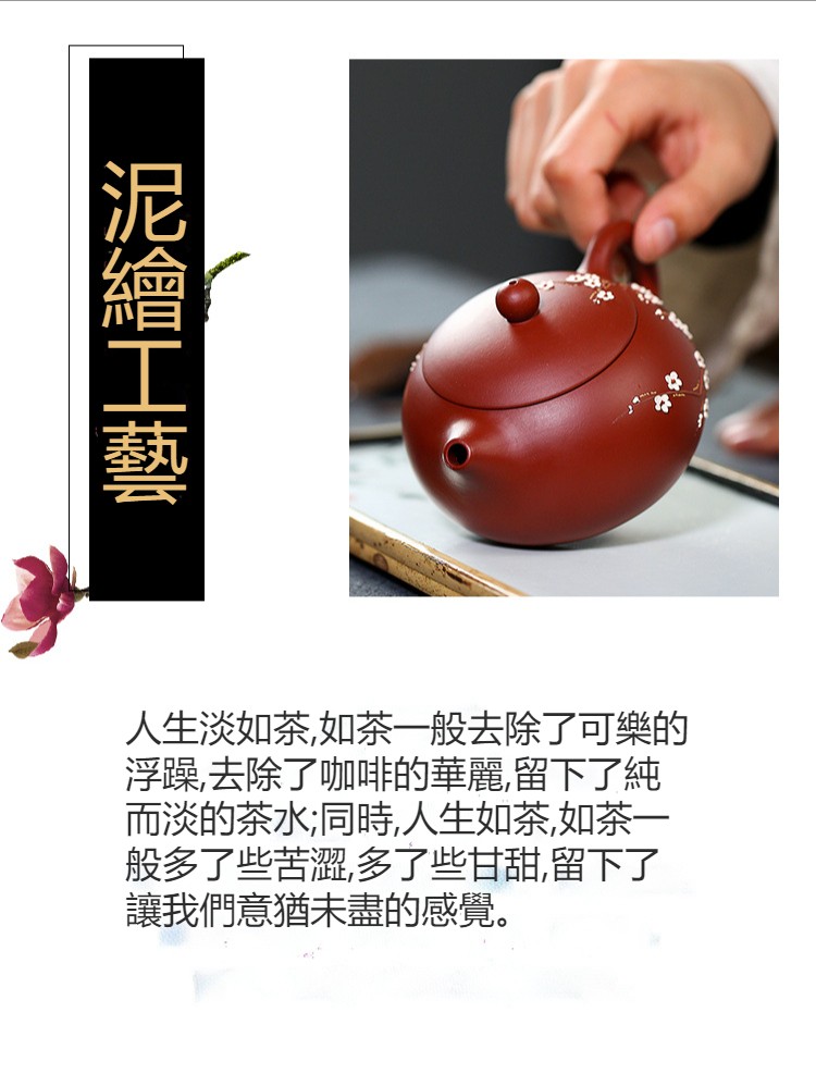 原礦段泥泥繪寒梅梨形紫砂壺(230cc)