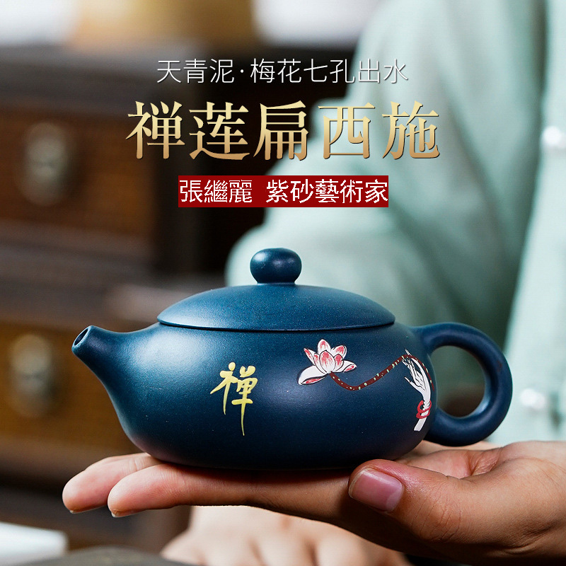宜興名家全手工綠泥扁西施紫砂壺精裝禮盒