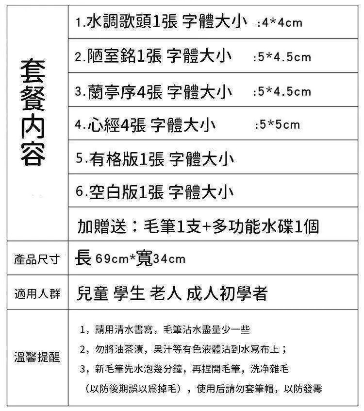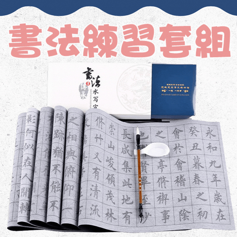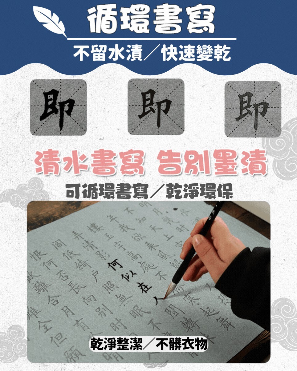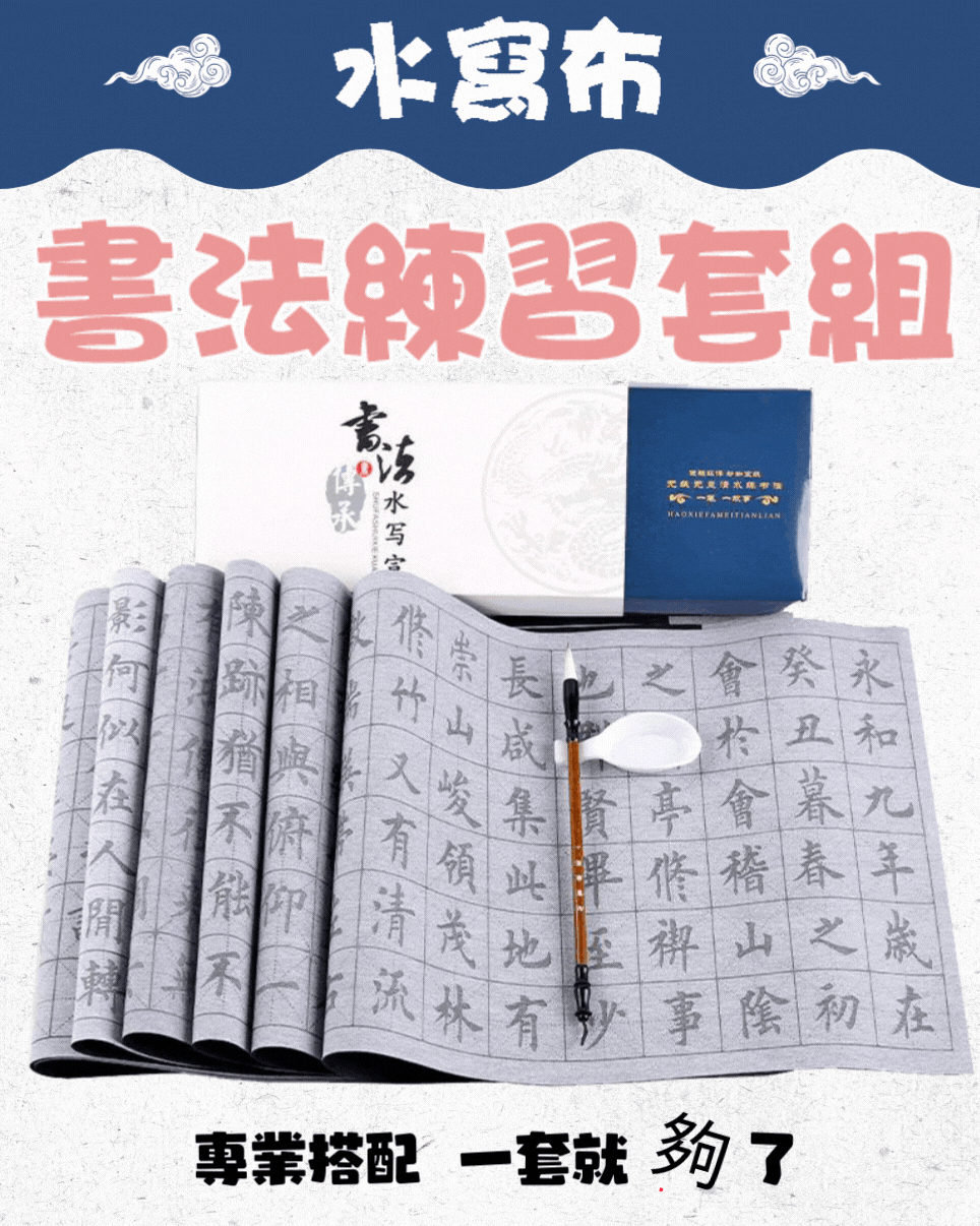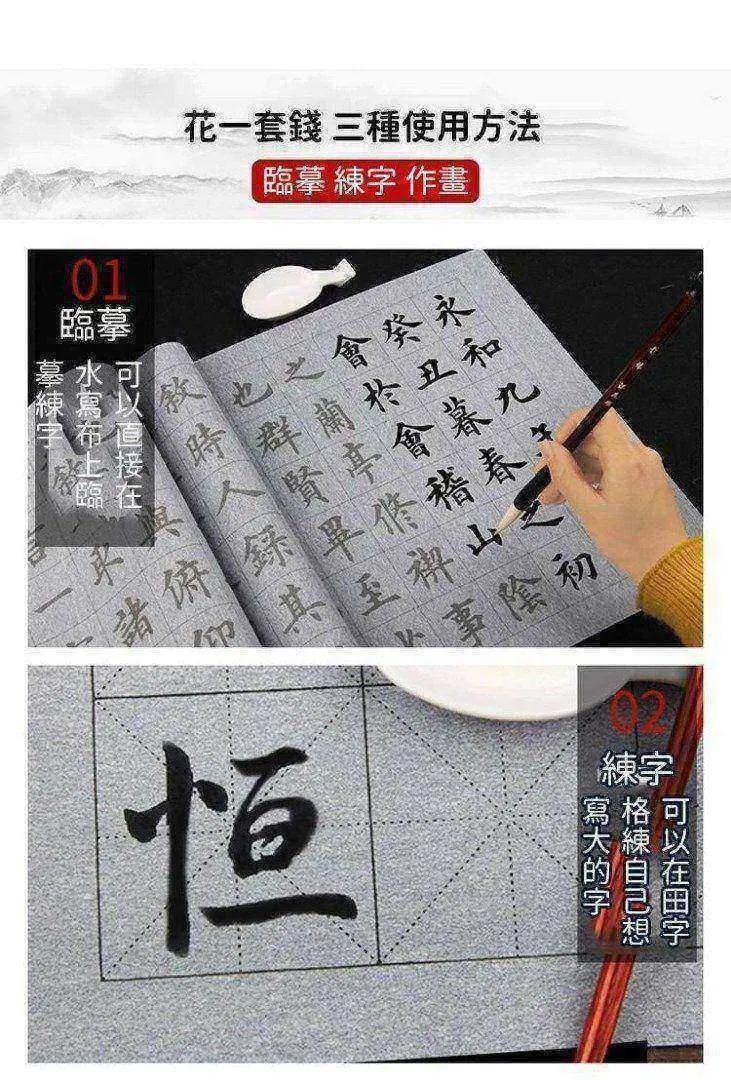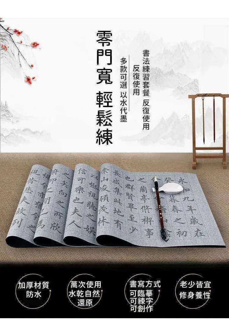 臨摹水寫布套裝(12張水寫布+1只毛筆+水碟) 以水代墨 重複練習 傳承經典!乾淨實用,萬次書寫,真正的享受練習書法的過程