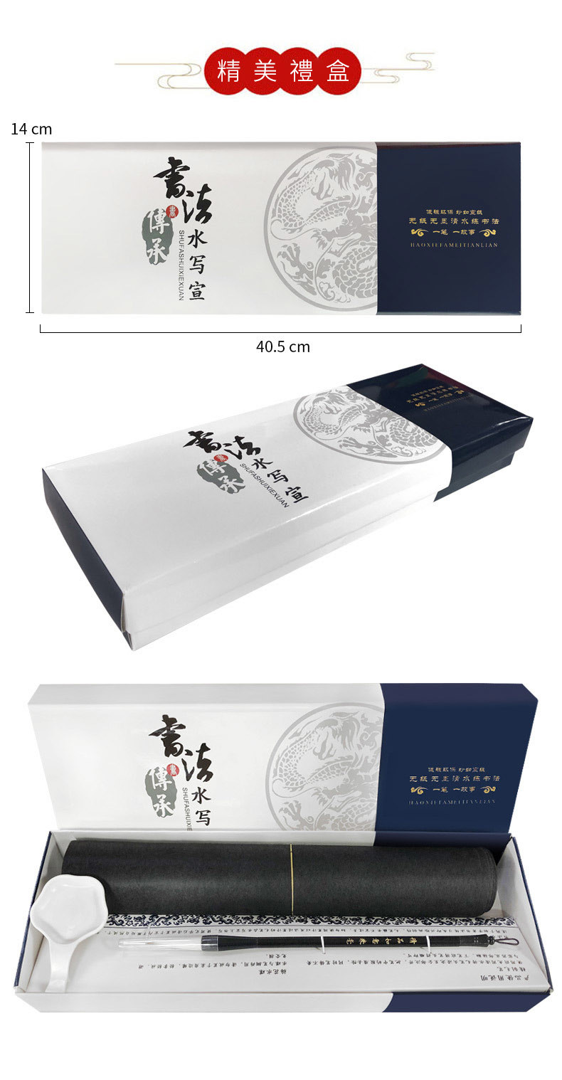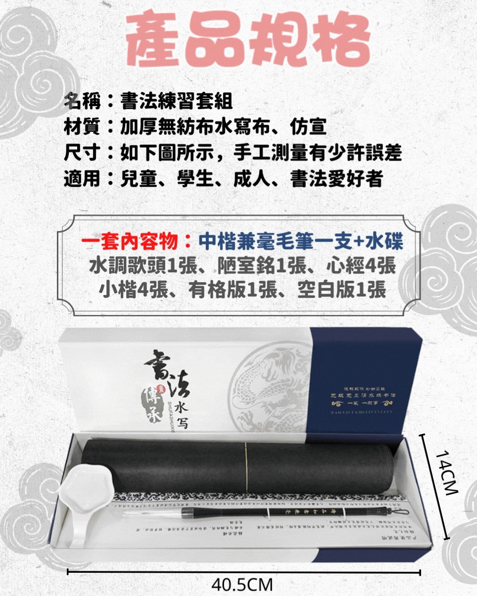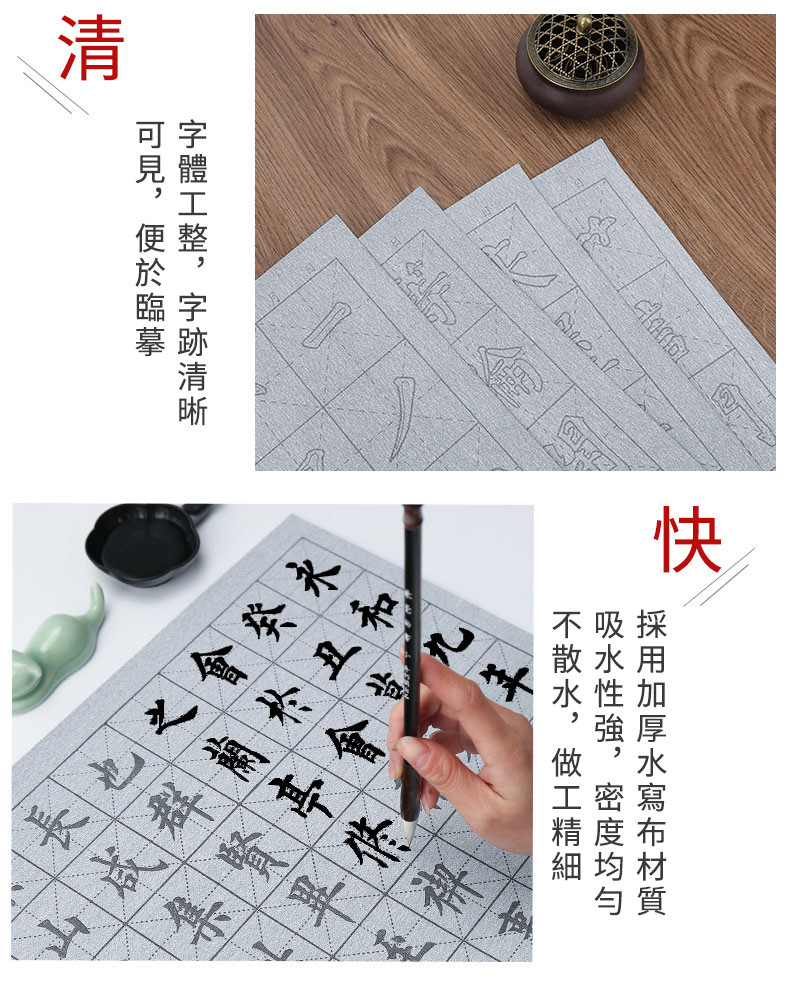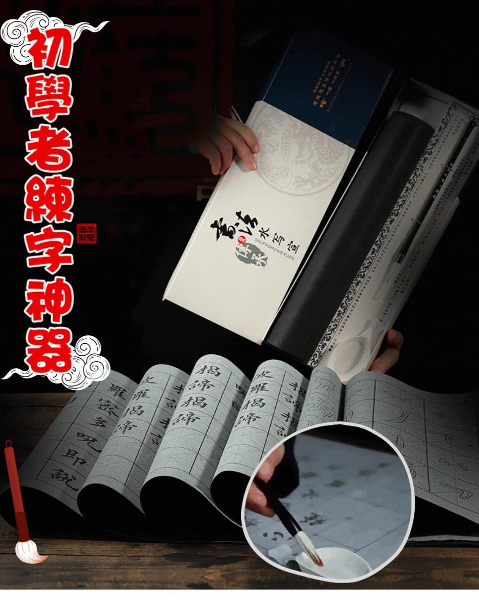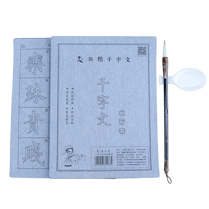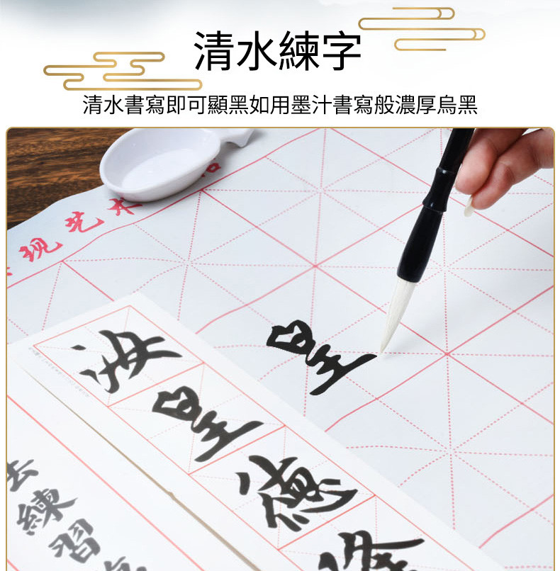 臨摹水寫布套裝(12張水寫布+1只毛筆+水碟) 以水代墨 重複練習 傳承經典!乾淨實用,萬次書寫,真正的享受練習書法的過程
