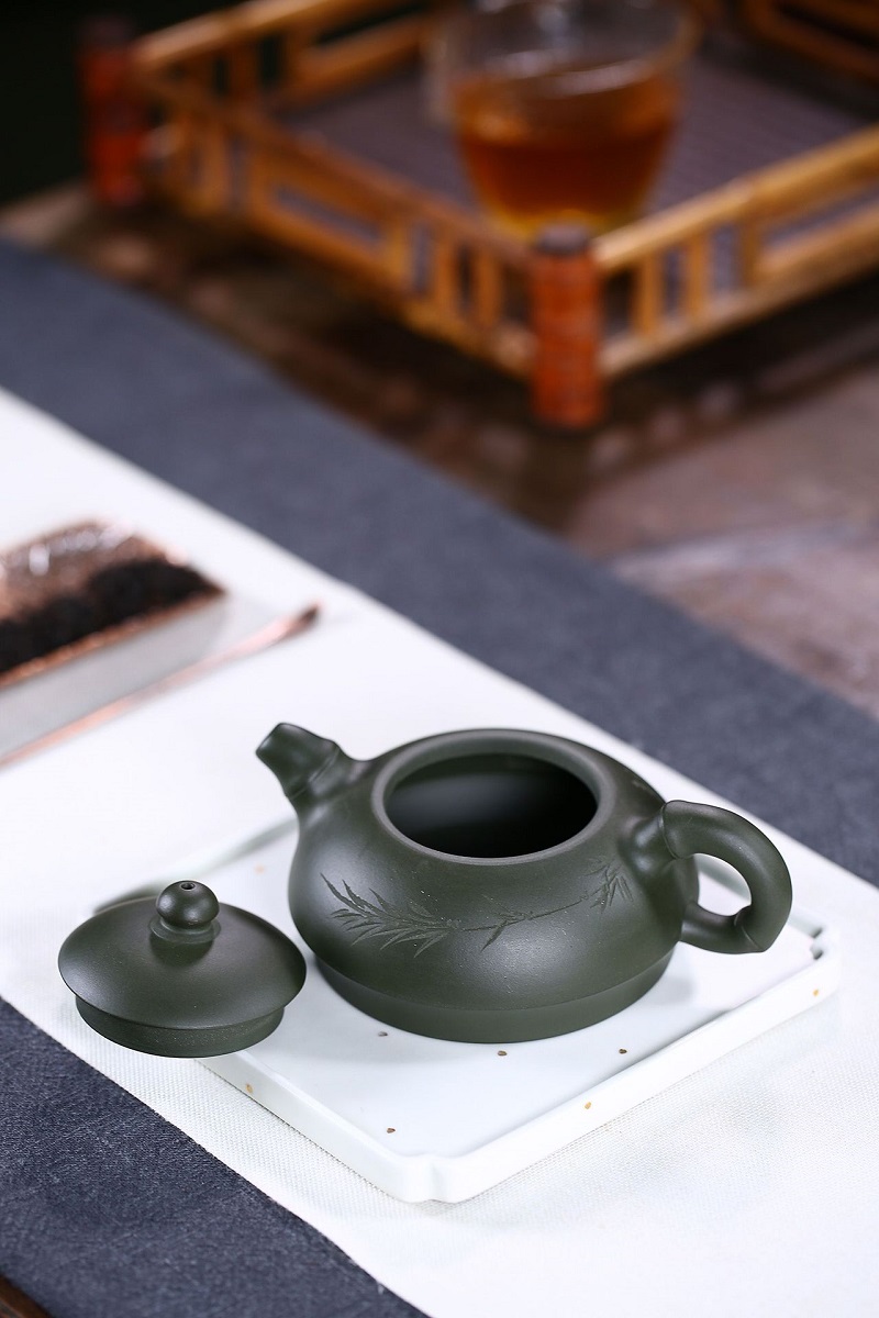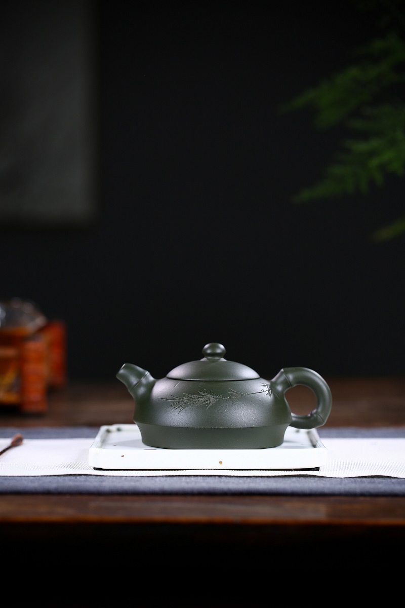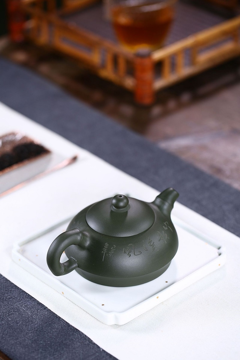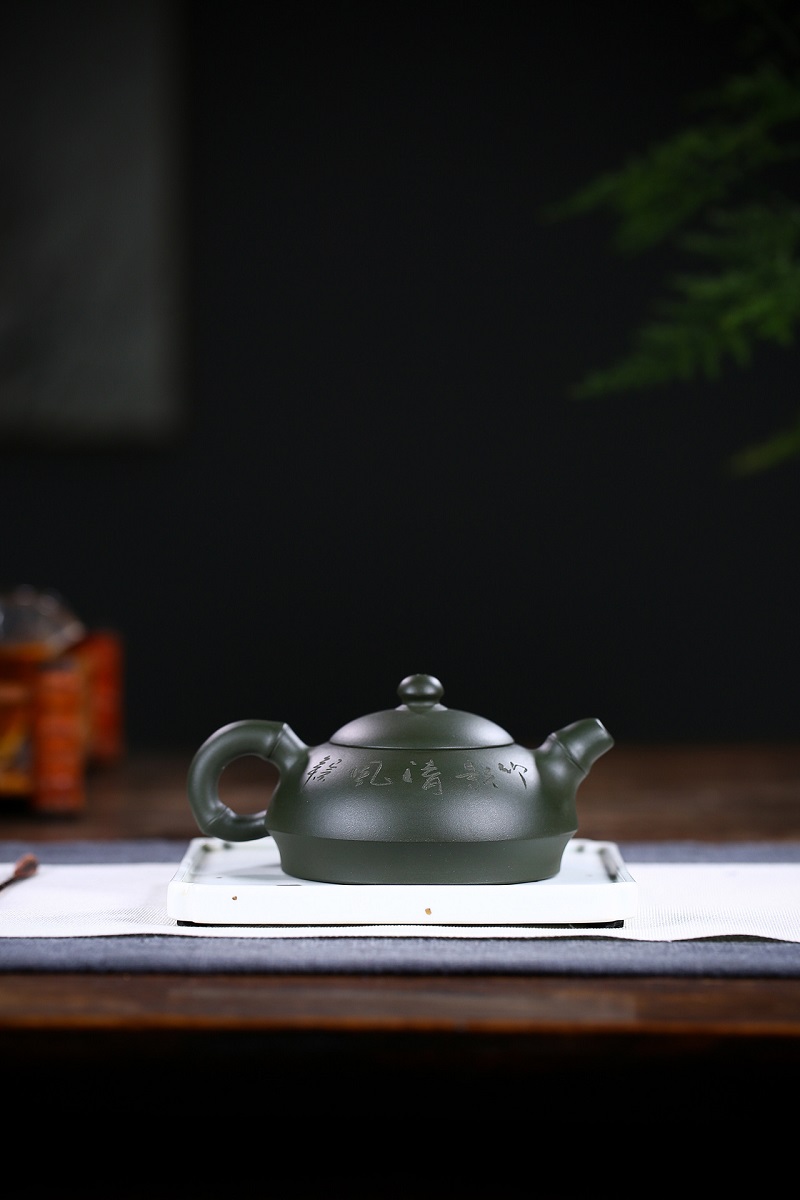 宜興名家全手工綠泥扁西施紫砂壺精裝禮盒