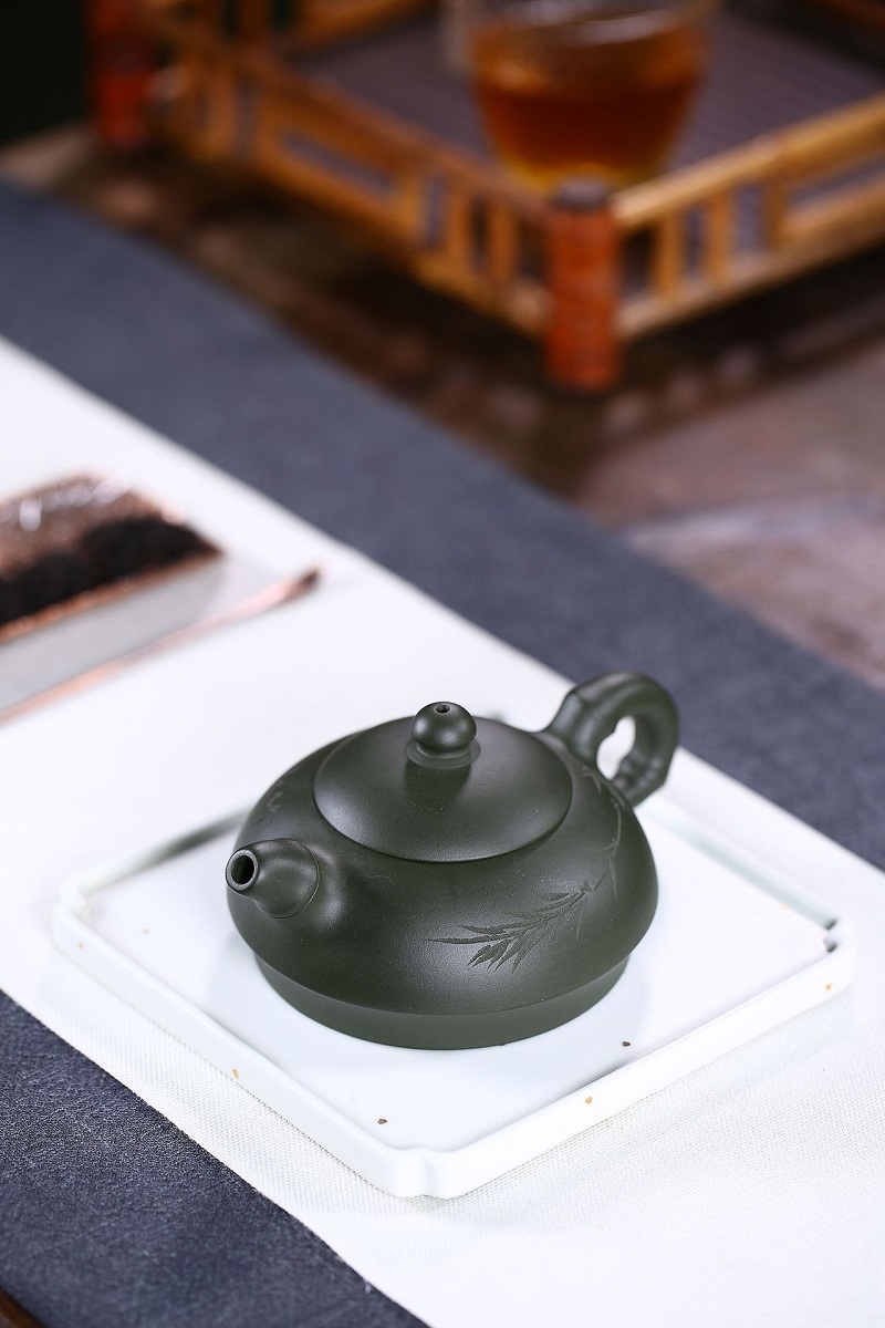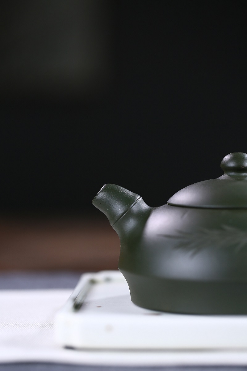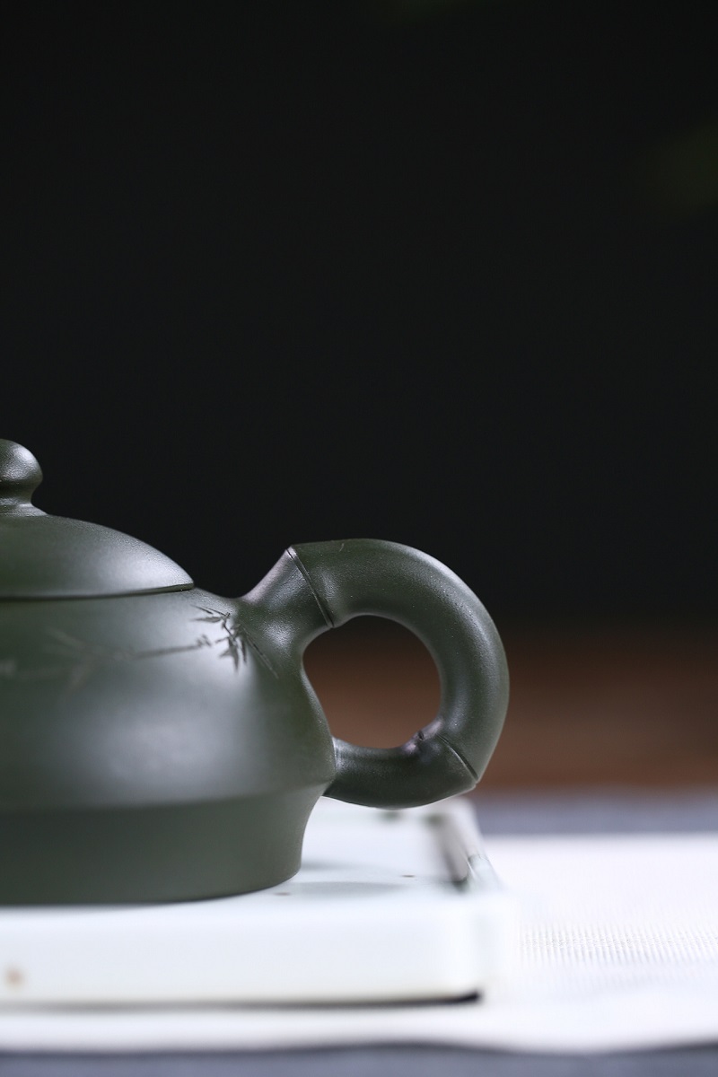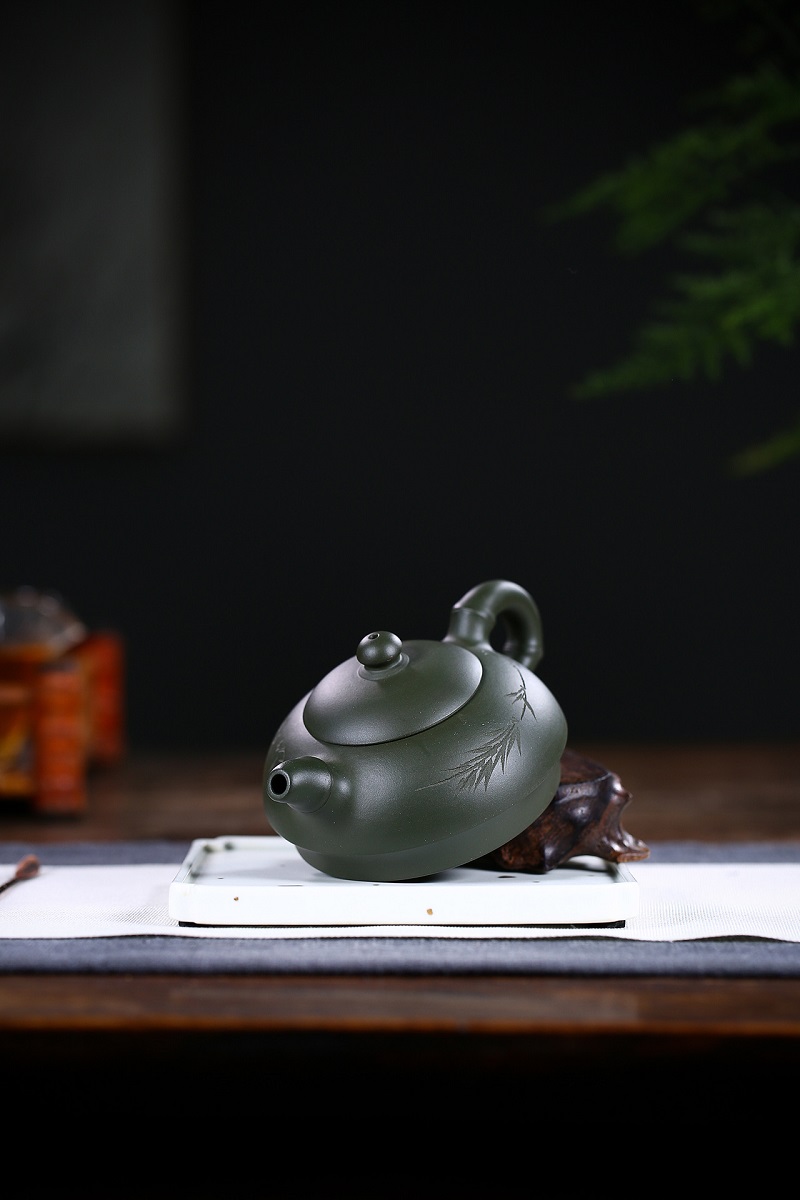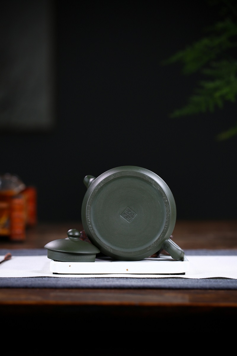 原礦綠泥手工荷葉壺