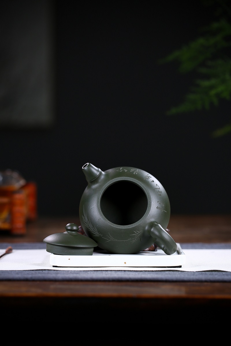 原礦蟹殼青刻繪高潘壺
