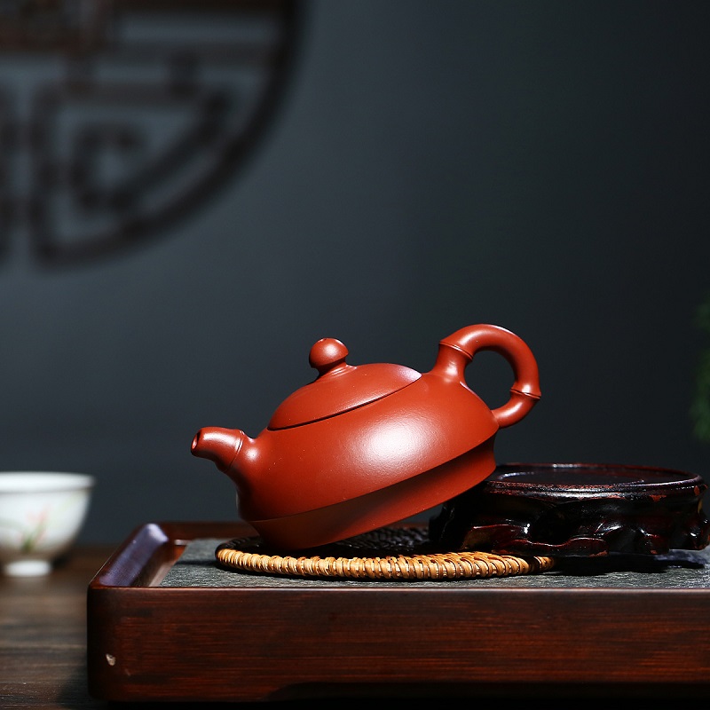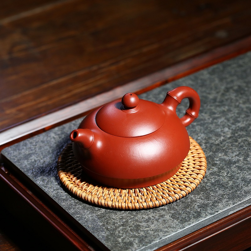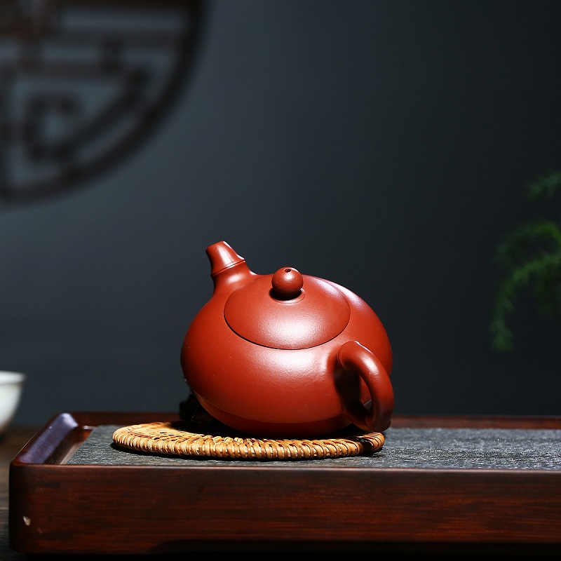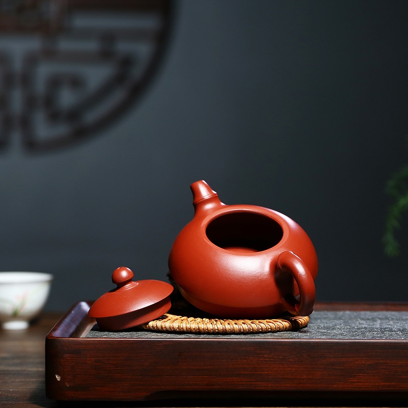 原礦朱泥全手工大紅袍小容量子怡石瓢紫砂壺100cc