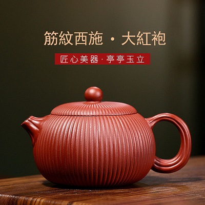 宜興原礦大紅袍筋紋西施壺