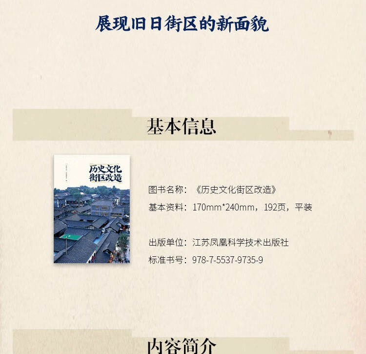 本書以古民居作為闡述對象,從古民居改造的角度進行理論性的探討和實踐性的嘗試。全書共三章,主要從兩大部分來闡釋古民居改造,一是關於古民居的基本知識,包括古民居的相關概念、保護思想和改造原則等,還簡要記錄了國內不同地區的古民居之特徵,讓讀者對古民居有大致系統性的認識;二是關於古民居改造實例的解析,選擇了七大古老民宅的改造故事,講述了它們的前世今生,致力於挖掘建築本身的歷史淵源和舊記憶,並結合實際可行的圖紙,通過各種保護修復與改造的措施,把它們轉變成酒店、會所、民宿等有價值的再利用空間,將舊時光復刻在人們眼前。改造實例中還附有大量的精美實景圖,也有各種施工細部的詳細講解,能給予讀者帶來啟發性的思考。
