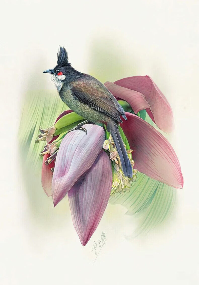 花和鳥是我的重要題材。它們都是物競天擇的造化之美。花是植物渴望生存和繁衍進化出來的最狂熱、最絢麗、最奇妙的表現形態,本意是吸引昆蟲和其他小動物來為自己傳粉,無意間把地球