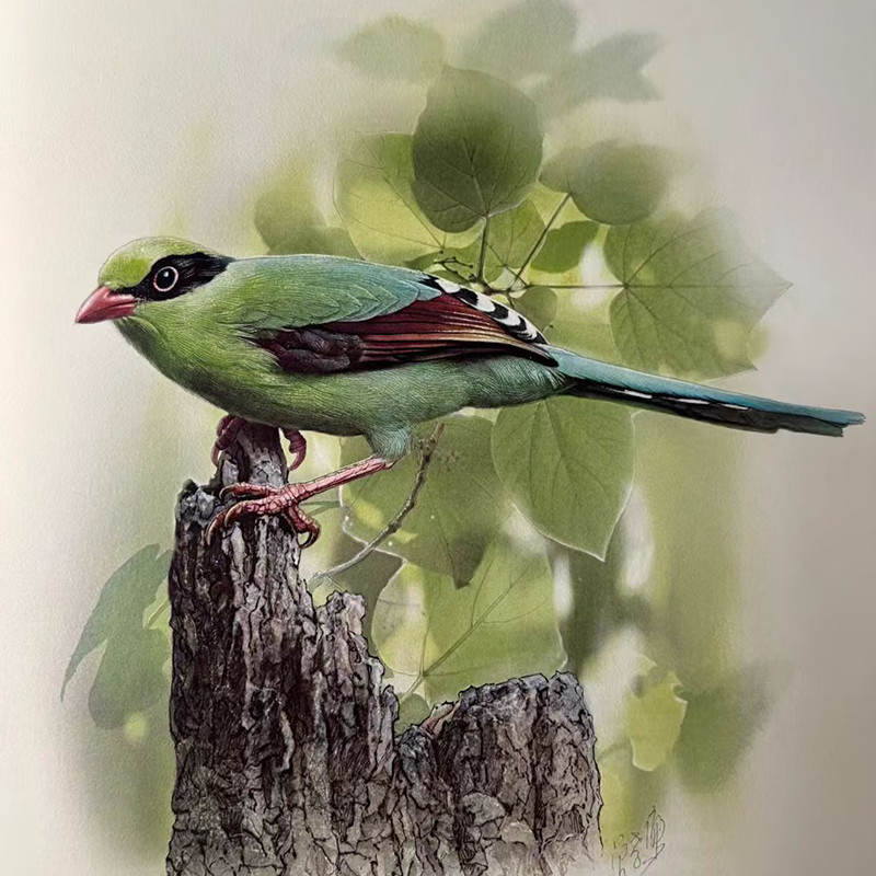 打扮得五彩繽紛。鳥有著得天獨厚的羽毛和翅膀,任其自由自在地在空中翱翔,無愧被稱為「自然的精靈」。人則是自作多情,在賞花觀鳥時,悅其形色,悟其神韻,從每一種花鳥的獨特意像中