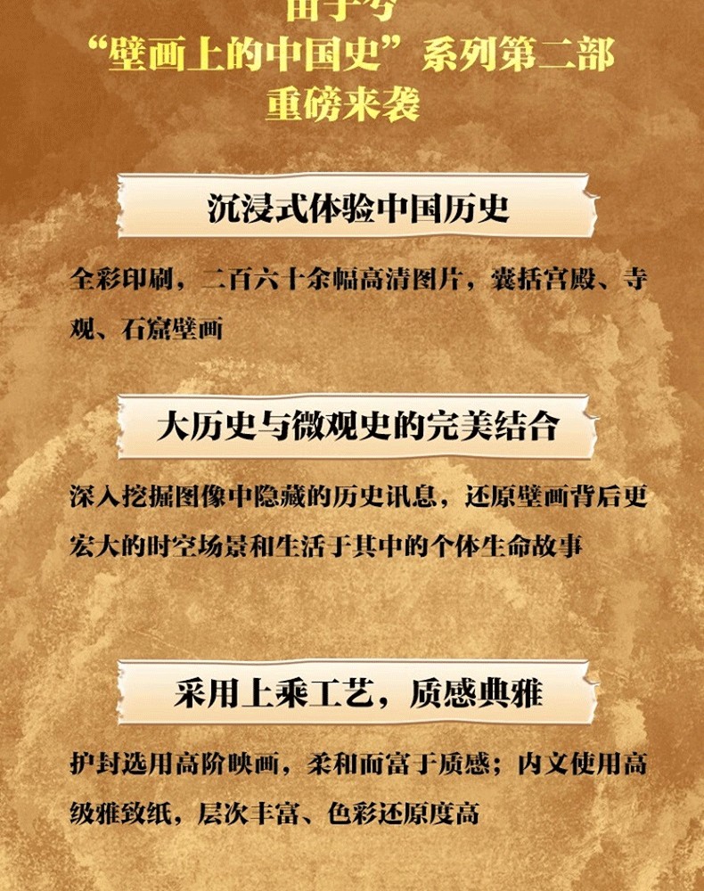 1. 聚焦經典:從東漢、魏晉南北朝,至隋唐、五代、兩宋的千年壁畫史中遴選14部傑出作品加以解讀;