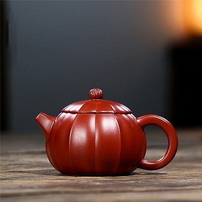 大紅袍南瓜瓣壺原礦紫砂仿古筋紋合菱壺