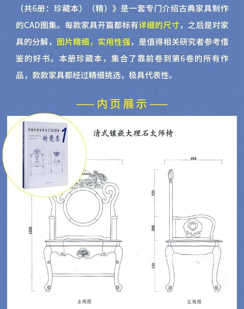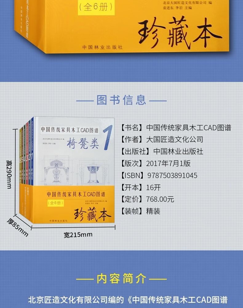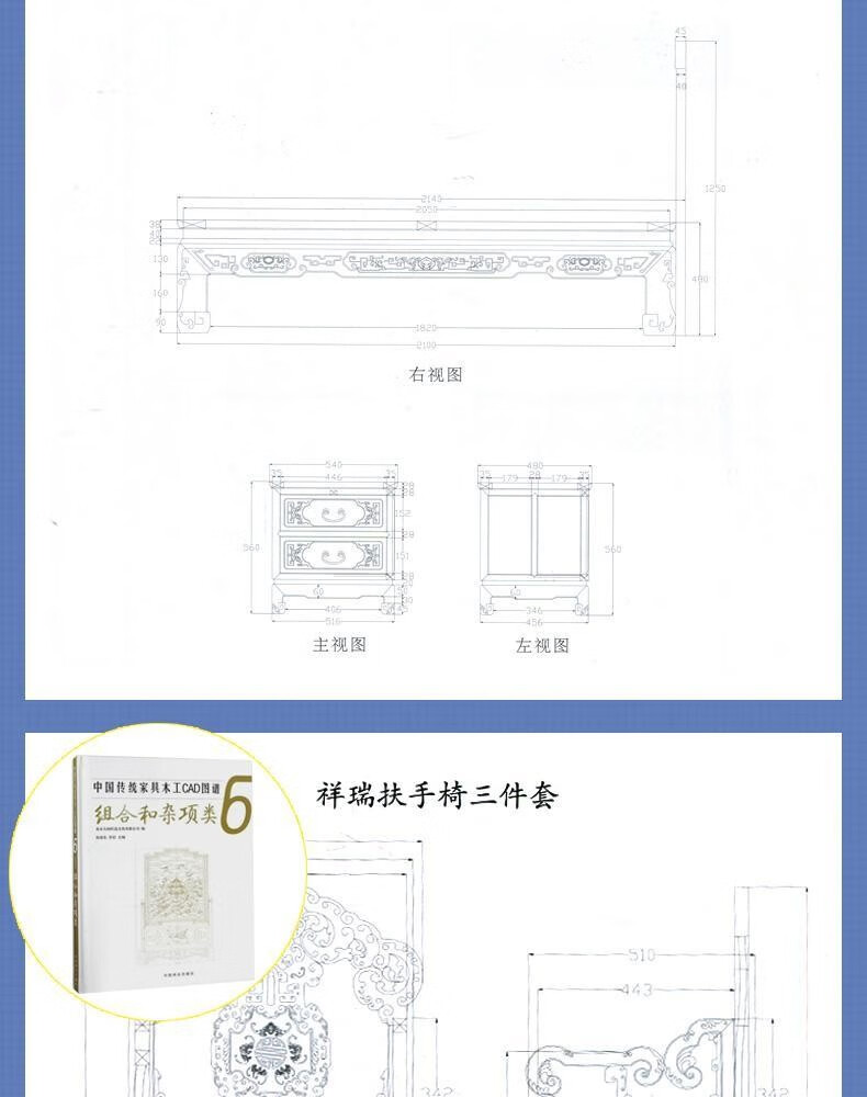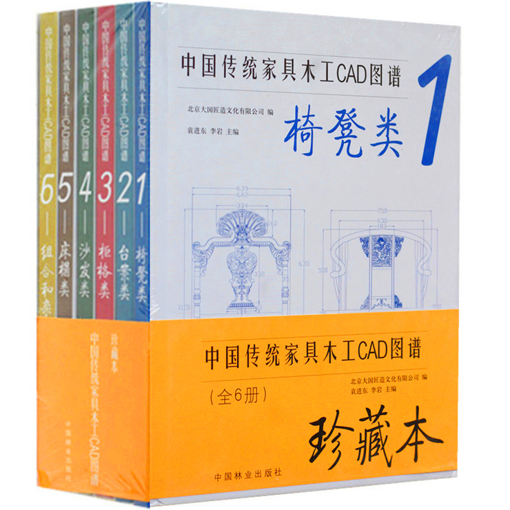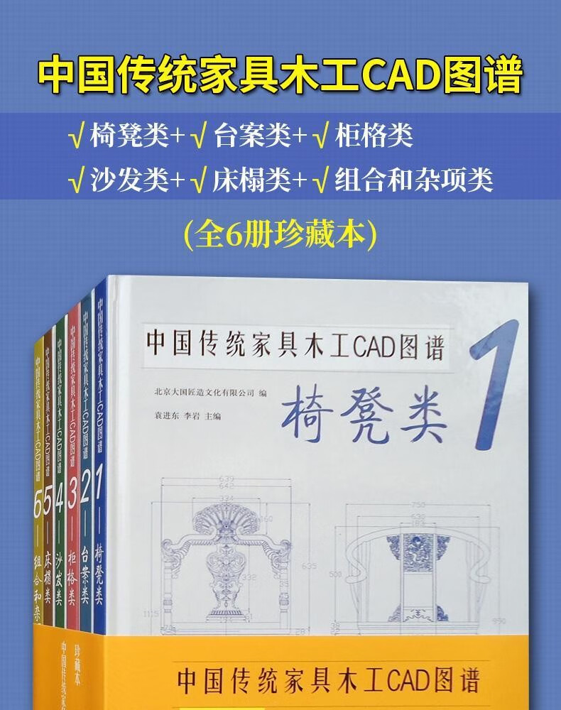 大國匠造 中國紅木家具製作圖譜(全6冊)椅幾類、櫃格類、台案類、沙發類、床榻類、組合和其他類 書中含實物圖 三視圖和CAD結構圖和雕刻效果圖
