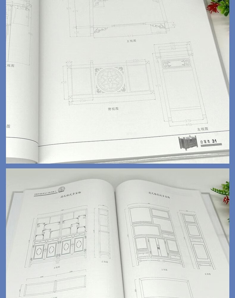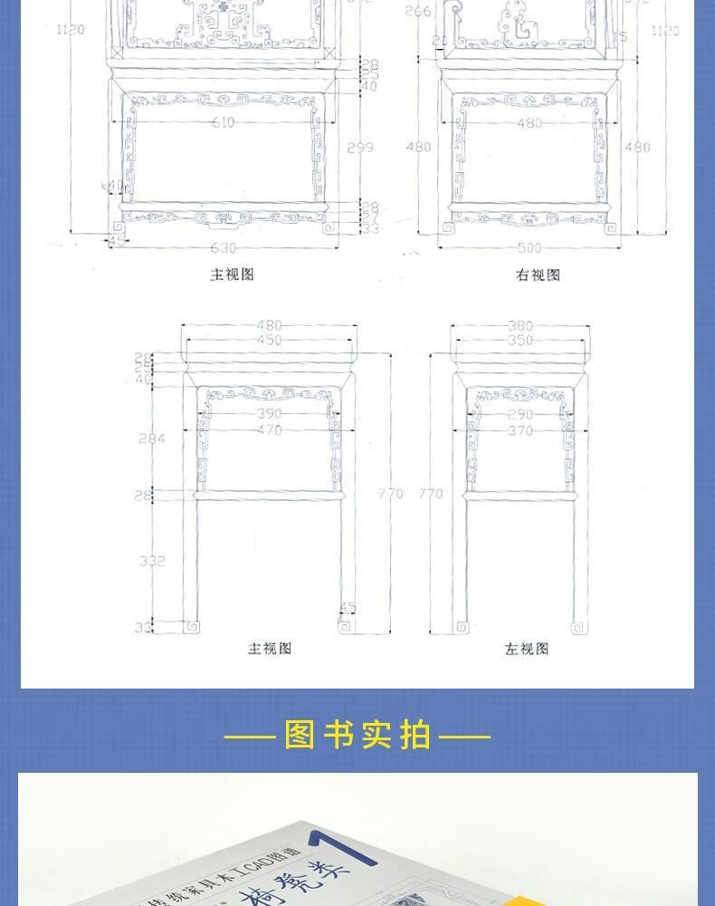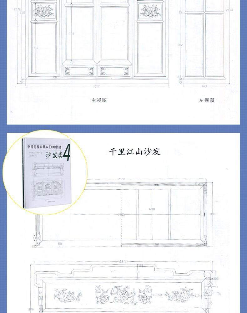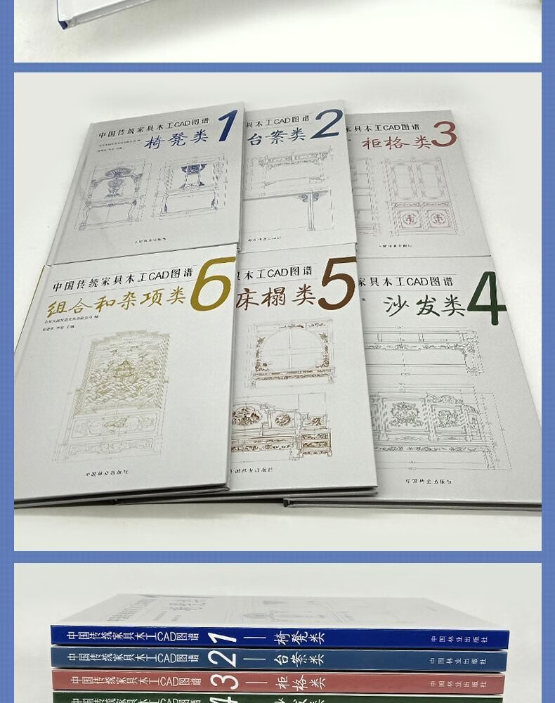 大國匠造 中國紅木家具製作圖譜(全6冊)椅幾類、櫃格類、台案類、沙發類、床榻類、組合和其他類 書中含實物圖 三視圖和CAD結構圖和雕刻效果圖
