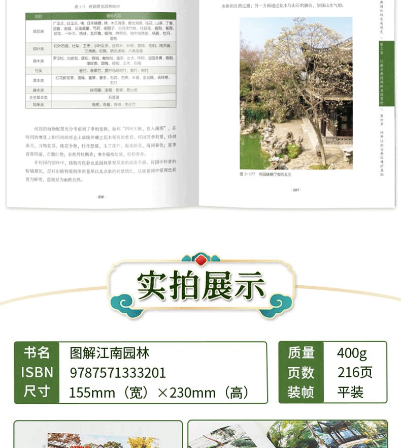 市面上專門講解江南園林的圖書不多,特別是像此書一樣,由園林專家傾力打造的更是少之又少。 本書的三位作者均具有高水準的學術、學識修養,背景和實力強大。 書中對於江南古典園林的人文地理環境、發展簡史、代表性花園、藝術特色的介紹十分詳細。 在嘩啦道來之時,不僅融入了大量豐富且真實可靠的史料與記載,更配備了300餘幅實景圖片,內容十分深厚。 不僅宣傳與普及博大精深的江南園林文化,同時也為當今具有地域性的園林景觀風貌塑造提供借鑒。 華而不俗的言語之間體現了江南古典園林的動人魅力,讓讀者在文字中依舊能感受古人的心境和生活,領略其中蘊含的東方美學。
