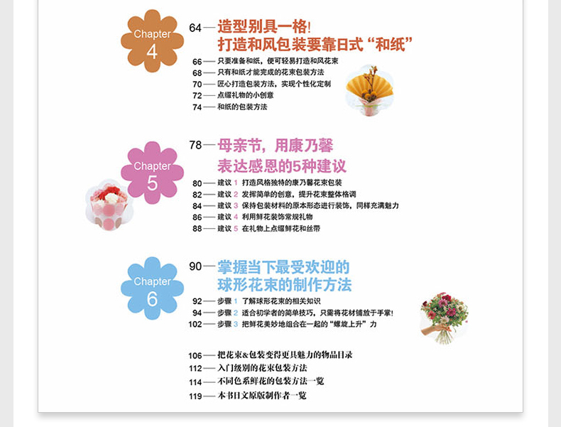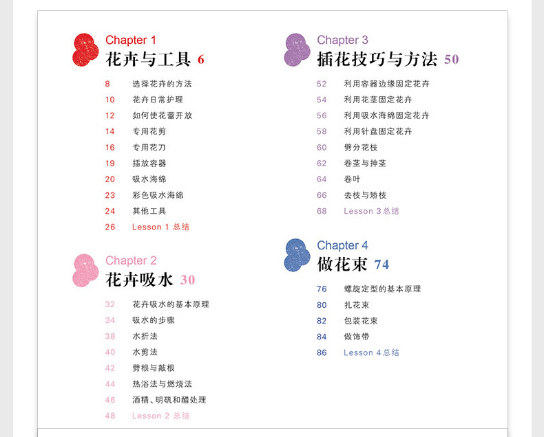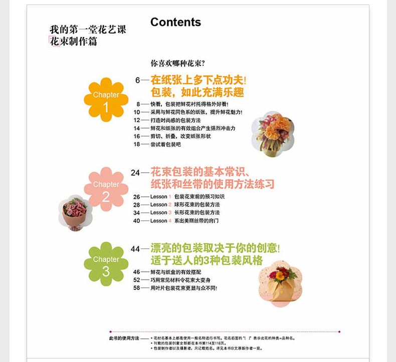 書中詳細介紹了處理花卉的相關基礎知識,如花卉的選擇方法與基本常識,插花工具,花卉吸水方法,花卉固定方法及花束、花環等製作方法。讓花朵以多種形式更加長久地綻放,陪伴我們的生活、溫暖我們的心靈。