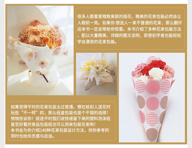 本書會為你介紹140種花束包裝設計方法,供你參考的同時也給你靈感與啟迪。