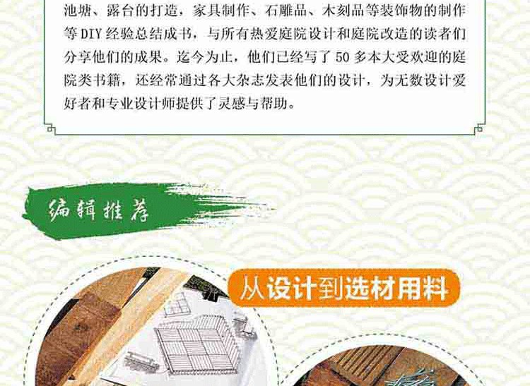 目前,木材應用於景觀設計正處於一個新舊材料、新舊技術交替時期,不久的將來,在充分保護環境和遵守相關國家規定的前提下,從生態、資源可持續發展的角度積極、合理地 開發利用木材資源,相信專用室外才材及其景觀製品將會得到更廣泛的應用及大家的認可。 本書的亮點在於: