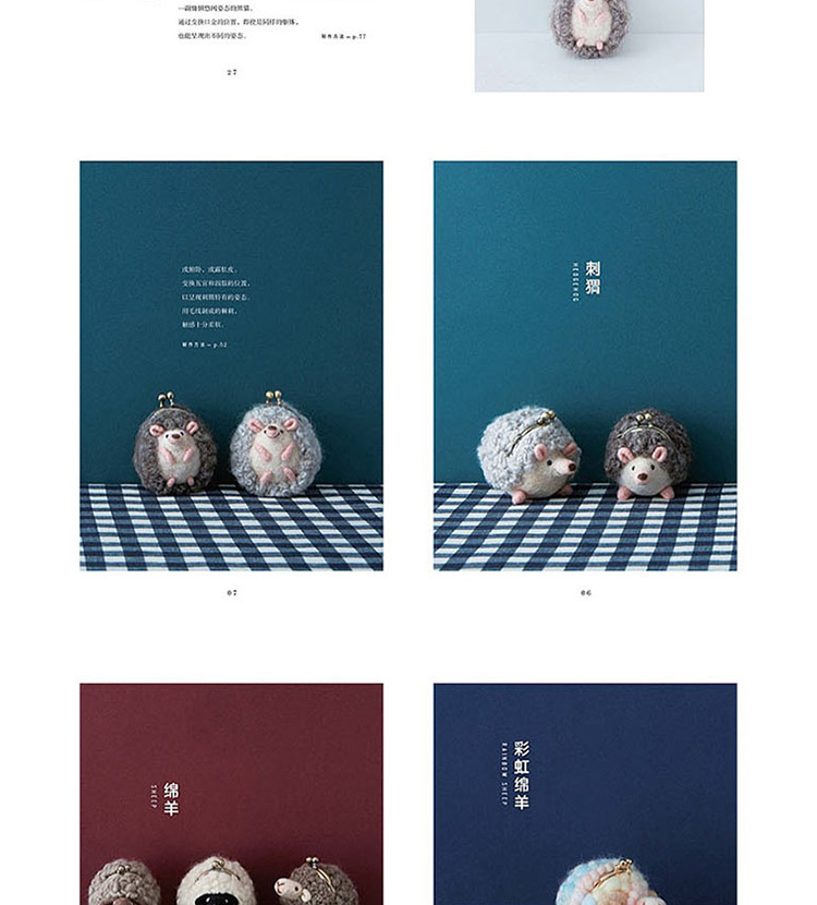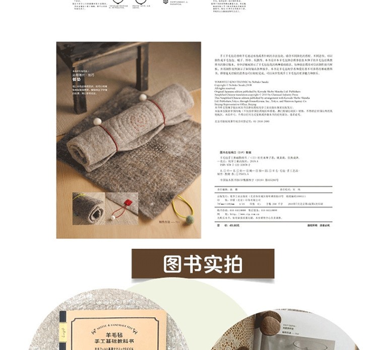 手工羊毛氈是指將羊毛通過水洗或者針刺的方法氈化,結合不同顏色的搭配、不同造型,可以製作成羊毛氈包、帽子、圍巾、玩偶等。本書是日本羊毛氈協會理事佐佐木伸子的羊毛氈經典教科書的修訂版本,書中詳細地展示了羊毛氈氈化的兩種基礎技法,每種技法都有對應的製作技巧解析,並用製作範例演示瞭如何做出各種細節。本書是羊毛氈初學者和愛好者不可多得的基礎教科書,即便毫無經驗的讀者也可以輕鬆完成,可以從中發現手工羊毛氈的更多魅力和快樂。