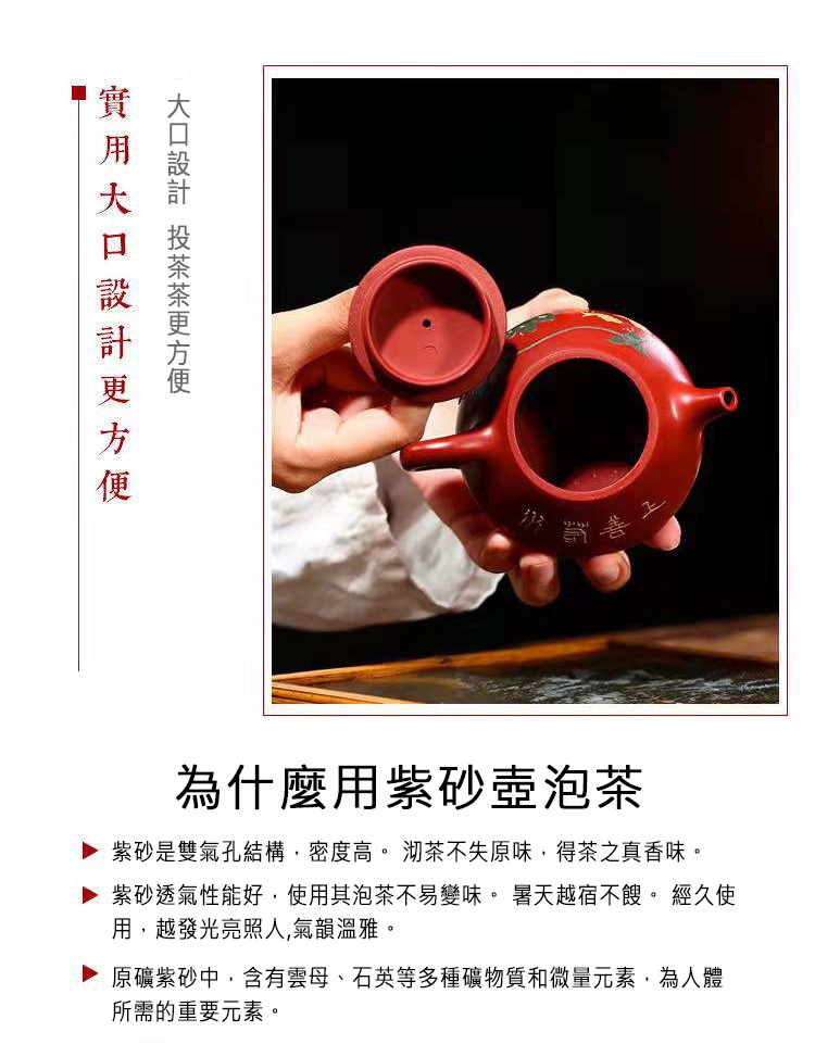 宜興純手工大口大紅袍 小容量紫砂茶壺(80cc)(禮盒包裝,附壺繩,收藏證書)