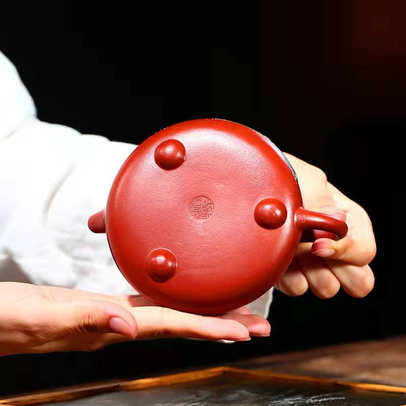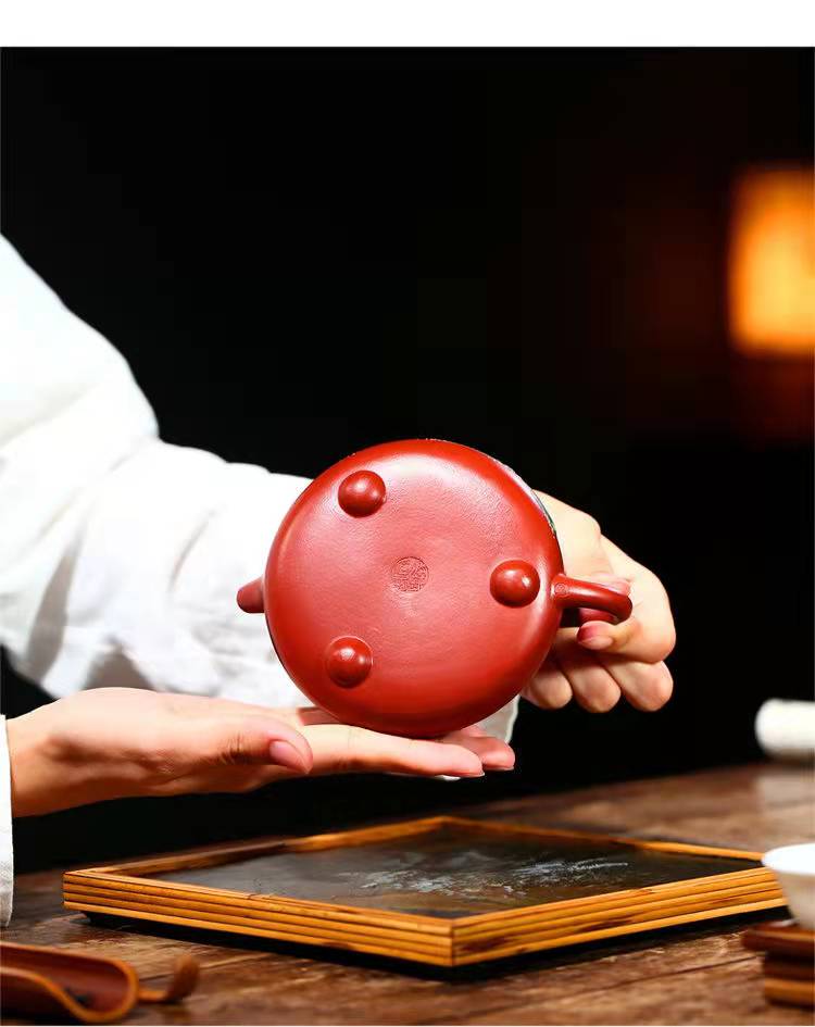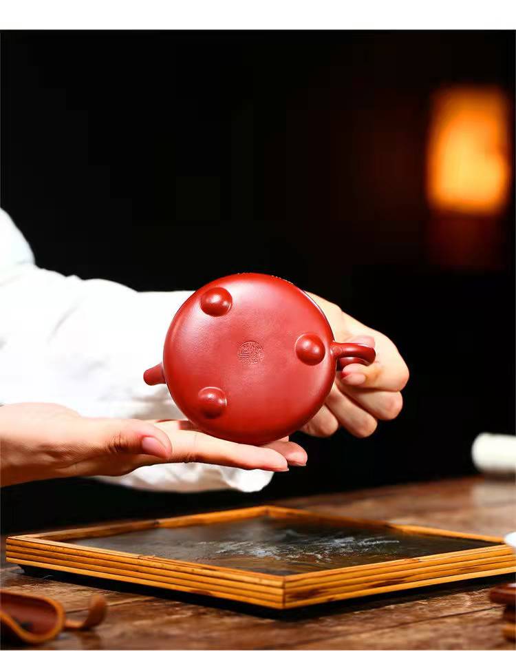 宜興紫砂原礦大紅袍手工井欄紫砂壺