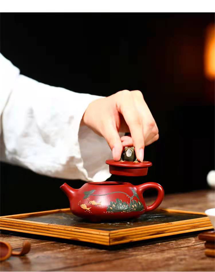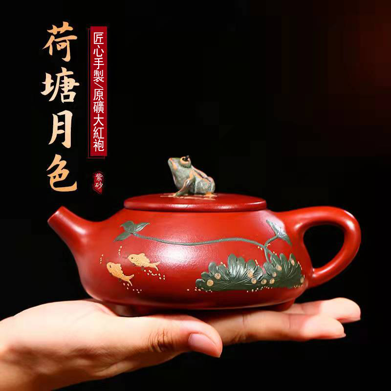 宜興原礦 石黃泥/ 大紅袍 荷塘月色紫砂壺