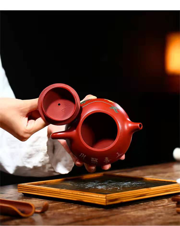 宜興手工原礦段泥玉笠刻繪紫砂壺