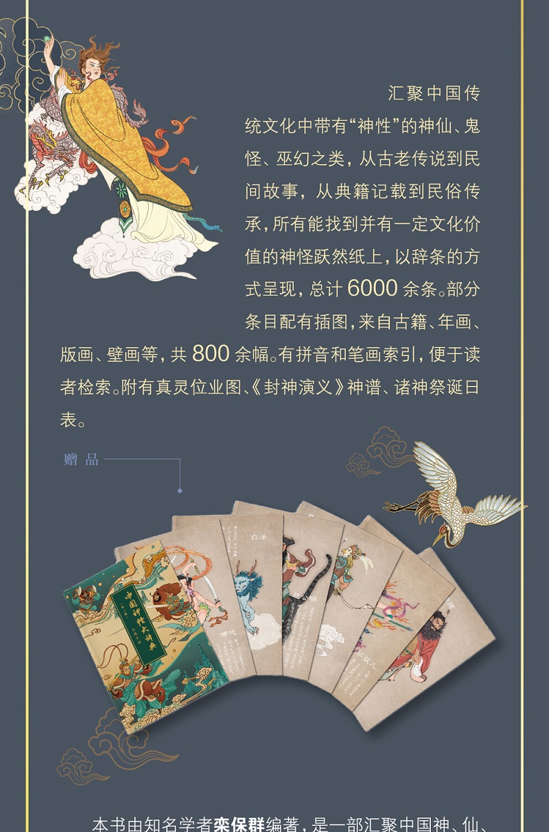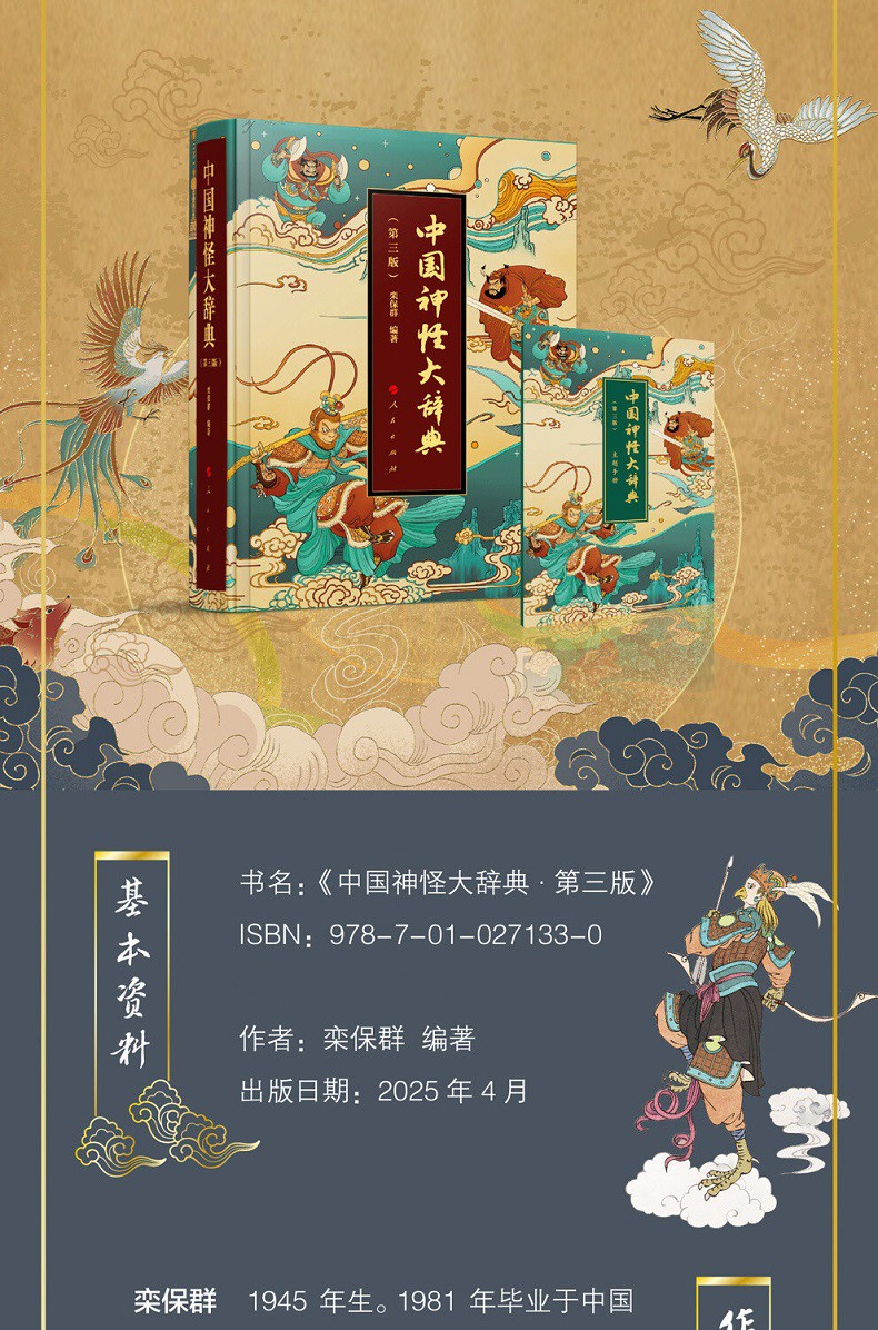 《中國神怪大辭典》由著名文化學者欒保群編著,是一部系統性整理中國傳統文化中神怪體系的工具書。 2009年由人民出版社首次出版,2018年推出修訂版。 2025年推出全新增訂的第三版。全書以辭條形式收錄了6000餘個具有「神性」的神、仙、鬼、怪、巫、幻等形象,涵蓋範圍從上古時期的伏羲、女婁,到近代的年獸,超乎你想像的全面,是一部兼具學術性與實用性的「神名大辭典」。