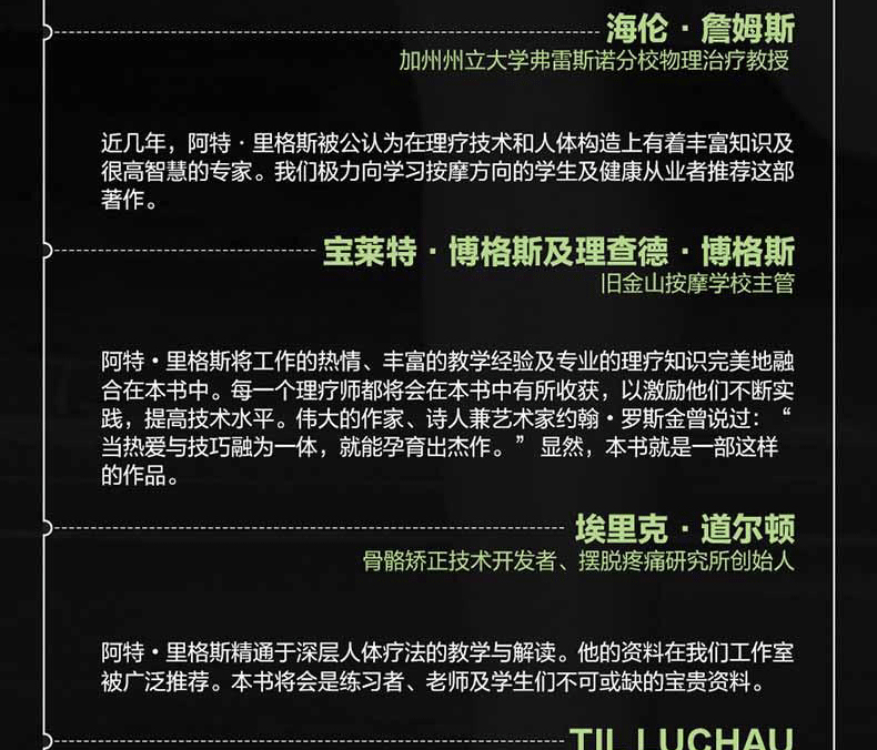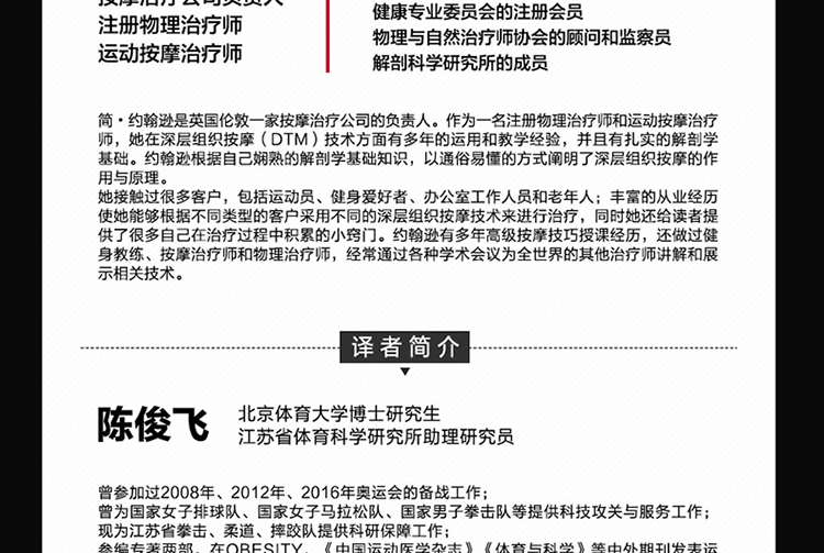 本書旨在提升普通人群、專業理療師以及健康從業者的按摩水平,以幫助被按摩者釋放壓力、緩解疼痛、提升活動能力、矯正身體姿態、預防常見損傷。