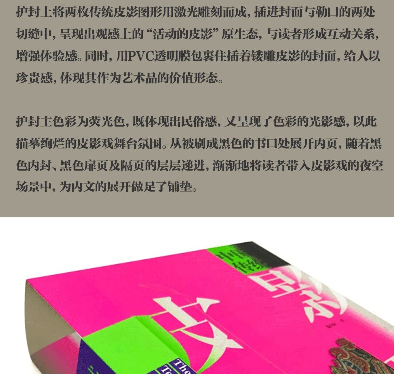 皮影藝術具有豐富的文化內涵,研究考證皮影造型,對研究我國的歷史、民俗、戲劇、民間美術、民間文學有著正面作用。 本計畫採用綜合性角度和大量翔實的歷史資料來解析中國皮影戲的發展,同時對學術界一些尚未解決的問題提出了自己的看法,兼具民俗學、社會學價值。 本書的出版對於弘揚中華優秀傳統文化、搶救非物質文化遺產、讓皮影藝術煥發新生有著重要的意義。